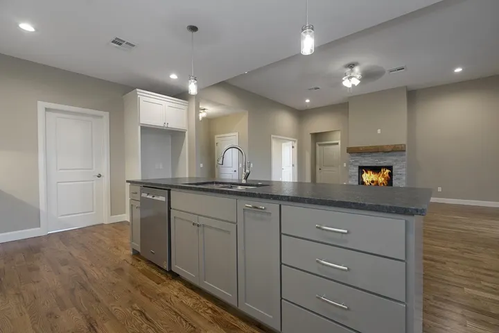 This home is one that you will want to stop and look! This 4 bedroom with an office, or could be 5 bedrooms with 2 1/2 baths does not lack on any of the extras. The designer cut no corners here. Open floor plan with kitchen and Livingroom with the Livingroom featuring a beautiful fireplace and hardwood floors. The kitchen has ample counter space and storage and the walk-in pantry will be a great bonus for any family. The split bedroom floor plan allows for privacy and very functionable with the huge bathroom and double vanity. The master suite has huge walk-in closet, tile walk-in shower, soaking tub and two vanities with ample counterspace! If that is not enough, the outside features a great covered back patio. The front yard features a sprinkler system and a storm shelter is in the 3 car garage. This home will surely check all of your boxes!