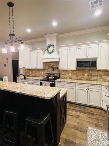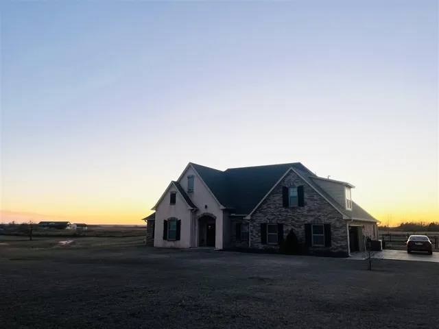 Welcome home to a place where sunset views are in abundance! 10116 Brenna is a 5-bedroom, 3-bathroom home that was custom built! Once you walk in the door, you are welcomed an inviting open floor plan with a fireplace and built in shelving. The kitchen, dining, and entrance have wood tile flooring and the kitchen has an abundance of counter and cabinet space. There is a hidden pantry with a countertop, freezer space, and a lot of shelving. The bedrooms in this home are large sized and the hall bathroom has double sinks and storage as well. This split bedroom floor plan has 3 bedrooms and a bathroom on one end, the master on the other end, and one bedroom and bathroom upstairs. The master has double sinks, a vanity, walk in shower, jetted tub, and walk in closet with built in dressers. Out back, you will find a vaulted covered patio. All of this on a 2.5-acre lot and Perkins Schools!