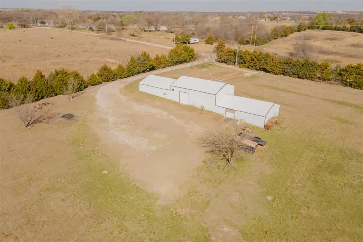 6 ACRES with Industrial type shop building that is over 5300 sqft. Building consists of large storage spaces; 3 overhead doors, 2 bathrooms, 2 semi enclosed offices. Office and Bathroom space is large with HVAC system for heat/air. 6 acres with trees. Gated. RV hook up space with 50 amp electric and can connect to sewer. No zoning. Buyer to satisfy specific use.