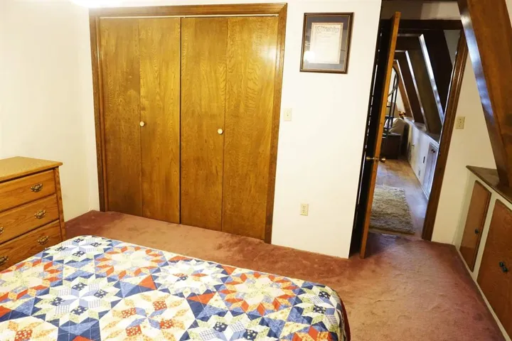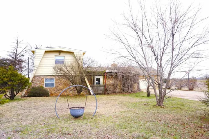 ACREAGE on PAVED access! Check out this rare opportunity to have a 10 acres: cross fenced in to 3 separate sections, 700+ sq ft shop w/concrete floors & electric package and lean to, additional storage for grain/feed, 2 additional frost free water hydrants for gardening or animals, running pens w/structures AND a POND!! The home is super unique A-frame style with wood beams and a ton of room and storage. Nearly 1800 sq ft, 3BDs w/primary on main floor, 2 full baths, 2 living rooms, updated Corian counter tops in galley kitchen and a fun office space that doubles as a storm shelter! The spiral staircase leads to 2 very spacious bedrooms, bonus space between rooms and a upstairs deck. In spring time, the front entrance to home is beautiful as it’s covered in wisteria, oversized two car garage & additional parking. Call today!