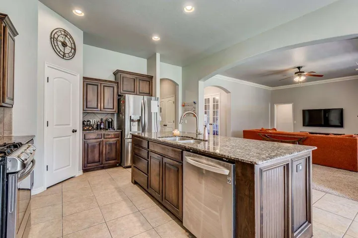 SW STILLWATER on a cul-de-sac with THREE BEDROOMS, AN OFFICE AND A THREE CAR GARAGE. This home is located in the SAWGRASS Addition in a great location. It has one of the largest lots in the neighborhood. Gorgeous curb appeal with a covered front porch leading to the gorgeous front door. This home has an open concept from the foyer to the living into the kitchen. The living room has a brick fireplace with gas logs, wood shutters and is open to the kitchen. The kitchen has granite counters, stainless appliances (2019), an island with seating and two pantry’s. The office has built in bookshelves and French doors. The split bedroom floor plans allows for privacy. The primary bath has double sinks, tub, walk in shower and walk in closet. The closet wraps around and connects to the laundry room. The laundry room has a sink, hanging rod and storage. The back has a covered patio, privacy fence and a wooden fort. This 3/2/3 home is located in SW Stillwater close to Sangre Elementary and the Middle School. Easy to show! Come see it today for yourself.