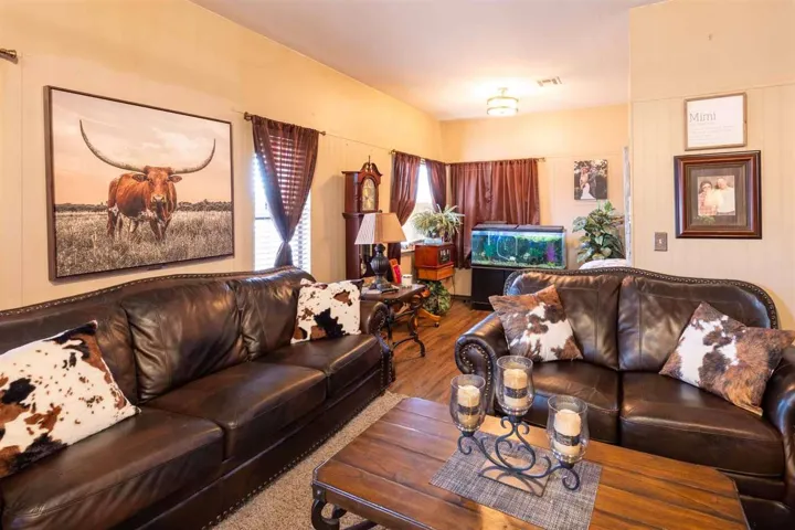 BEAUTIFUL AND READY FOR YOUR FAMILY!! You will have plenty of space to grow in this warm inviting brick home with 2853 square feet. Enjoy the 5 bedroom, 3 bath home with two large living area and a spacious kitchen with a oversized pantry. The living room includes dining area off kitchen, making it perfect for entertaining. The den is cozy and warm with wood floors with a stair case leading to a large bedroom, full walk in closet and laundry chute. 4 bedroom downstairs including the master bedroom, full bath w/shower and walk in closet. Two more bedrooms with a full bath, tub/shower combination conventionally located between them. The 5th bedroom/office has a outside door entrance great for business or office area, with built in desk, storage and a closet. Hallway has the perfect place for your freezer and utility room with cabinets and storage. The home is on 5.5 original Morrison town lots, privacy fenced back yard with fire pit, chicken coop and barn/ feed room. Colorful chickens and geese can stay or be removed. Circle drive has covered parking plus second attached double carport with storage room. Enjoy the lovely landscaping around the home and RV hook up. There is a covered patio on back porch and covered patio off the den. Call for more information and to view this home. Must have confirmed appointment, 24 hour notice. City water, garbage and sewer, ONG gas and OG&E electric. Childs play ground equipment is located on the lot to the south of home that is not owned by seller. The RV is also currently setting on the same south lot but there is an area on south side of carport that it can be parked with electric hook up.