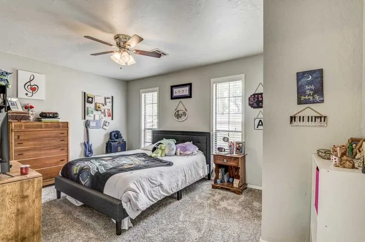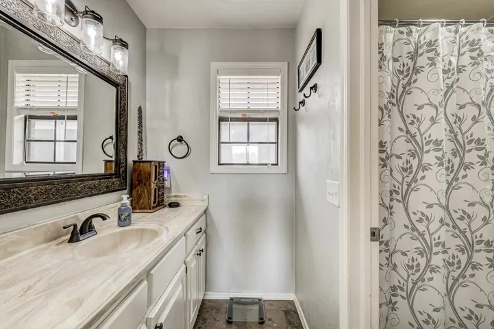 Beautifully updated 3 bedroom, 2 bath home in a desirable corner lot location! This move-in ready home features cathedral ceilings in the living room, creating an open and airy feel. On either side of the fireplace there are custom built-ins, adding both style and function. The main living area showcases fresh shiplap that continues into the kitchen along with wood-look tile flooring. The spacious primary bedroom offers direct access to the back patio, perfect for enjoying the outdoors. The front bedroom connects to the hall bathroom, providing a great space for guests or a home office. Outside, you’ll find a large 2-car garage and a 12 x 20 insulated outbuilding with electricity and two loft storage areas- great for a workshop, gym, or extra storage. Don’t miss your chance to make this beauty your next home!