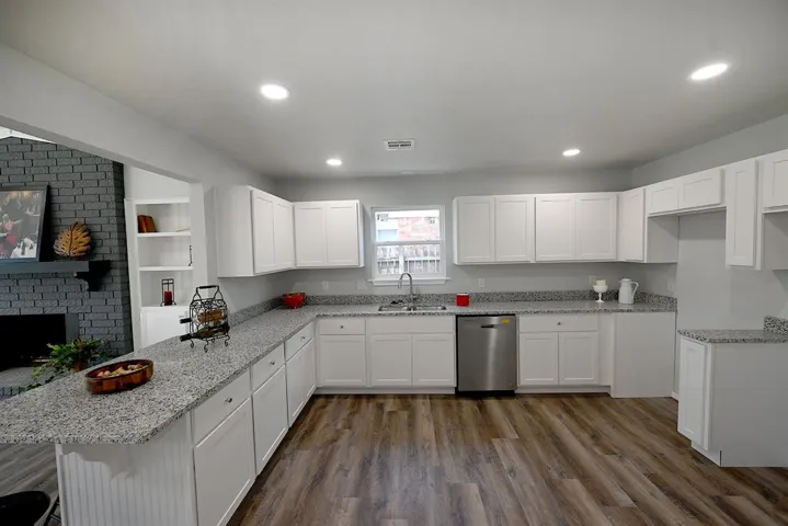 Fall in love with this transformed home in the highly sought-after Quail Ridge Subdivision. Since purchasing the home, the current owner did extensive renovations and updating. The wall between the kitchen and living room was removed to enable a wide open kitchen/dining/living concept. The access from the garage to the door was relocated to accommodate the extensive kitchen remodel. The kitchen has new cabinets, granite countertops, stainless steel appliances, and a sneaky coffee bar by the garage access door. The open living room features high ceilings, a newly painted brick fireplace and freshly painted built-in shelves. The hallway leads to the three bedrooms, a re-located utility area and the main full bath. The plumbing updates include: previous owners ran all new PEX throughout the house due to a leak that was under the slab and had replaced the water heater. Current owner replaced all the valves, faucets, sinks, tub/shower, primary shower and toilets. Electric: replaced all switches, plugs, receptacles and fixtures, the main panel and breakers were updated. HVAC: Previous owners replaced the furnace within the last 5+ years and had new duct work plumbed in the attic. Chic barn doors were added to the utility area and primary bath, all new flooring, exterior doors and windows (with the exception of the front door), “popcorn ceiling” texture was removed. Other updates include all new interior and exterior paint, including a mortar wash brick finish. The roof was replaced with 5 tab 30 year shingles and a new garage door mechanism was installed.