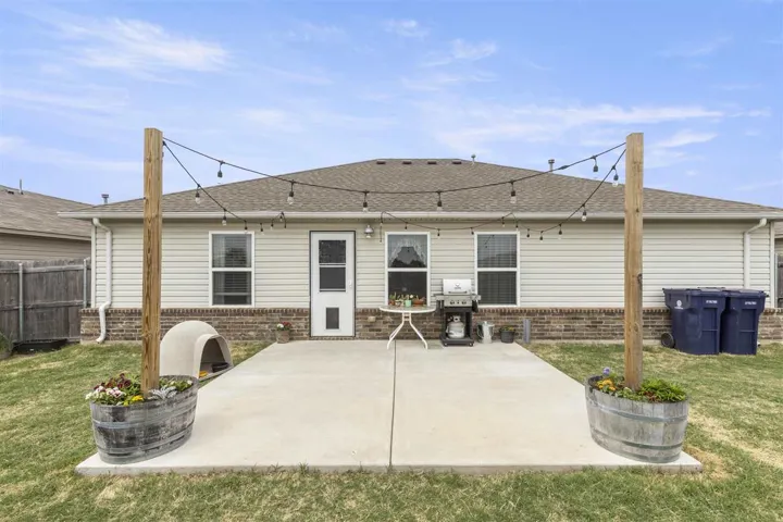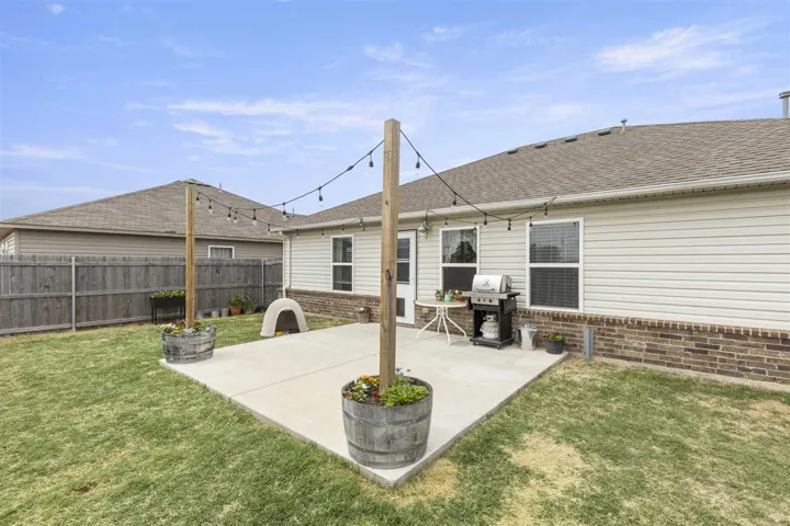 Nestled in a quiet neighborhood, this charming, well-maintained, newer home offers a cozy retreat. With a clean and functional design, the open-concept layout seamlessly integrates the living, dining, and kitchen areas, providing a welcoming space for gatherings. The primary bedroom features an ensuite bathroom that provides plenty of space with a fabulous master closet. This home features two other bedrooms and a second full bath. A nice-sized backyard with a privacy fence and a cute little patio area provides a relaxing retreat after a long day. For those stormy Oklahoma nights, the storm shelter offers peace of mind. With its efficient layout and contemporary finishes, this home provides a perfect canvas for customization and personalization. Don’t miss the opportunity to make this lovely home your own.