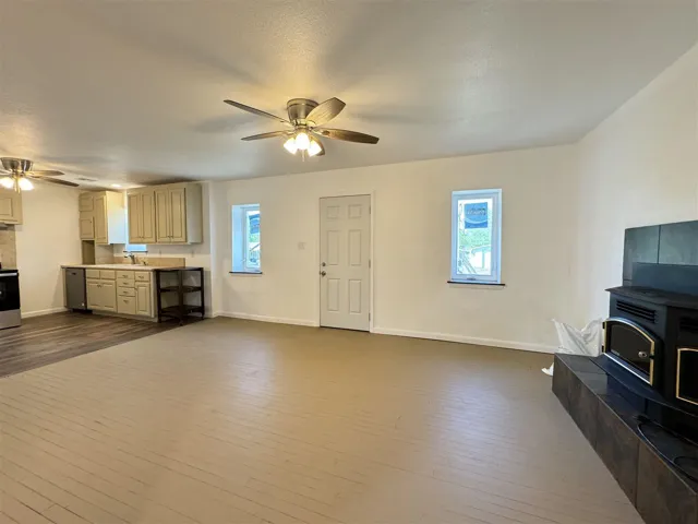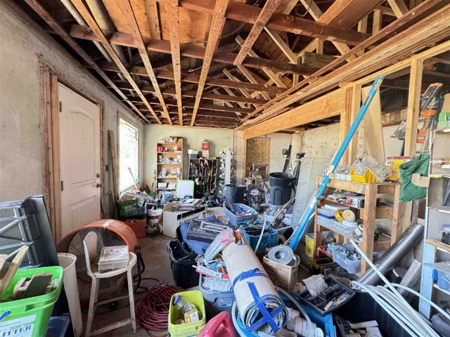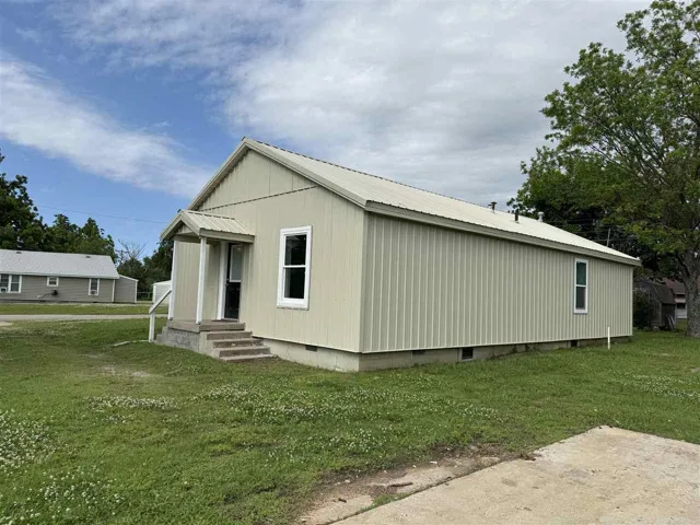 Welcome to this charming and unique 2 bed/1 bath totally updated metal barndominium, located on a huge corner lot in a quiet, peaceful neighborhood close to schools and parks. This home has been meticulously renovated with all new plumbing, electrical, HVAC system, appliances, hot water tank, interior doors, and windows, ensuring modern convenience and comfort. Step inside to discover a spacious open concept living/dining/kitchen area, featuring a cozy pellet stove fireplace as the centerpiece of the room. The kitchen boasts all new appliances and ample counter space, perfect for cooking and entertaining. The spacious master bedroom offers a huge walk-in closet leading to an amazing bathroom with a huge walk-in shower and a modern farmhouse glass door. A big storage closet provides additional convenience. The home also includes a huge laundry/mudroom/utility room, offering plenty of space for storage and organization. An amazing extra is the additional workshop that could house a home business or serve as a remote home office space, providing flexibility and convenience for work or hobbies. Also included is a garden storage shed, perfect for storing outdoor equipment or tools. Don’t miss the opportunity to own this adorable and unique home. Call to set up a showing appointment today! Seller is a Licensed Real Estate Agent.