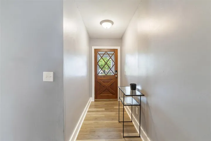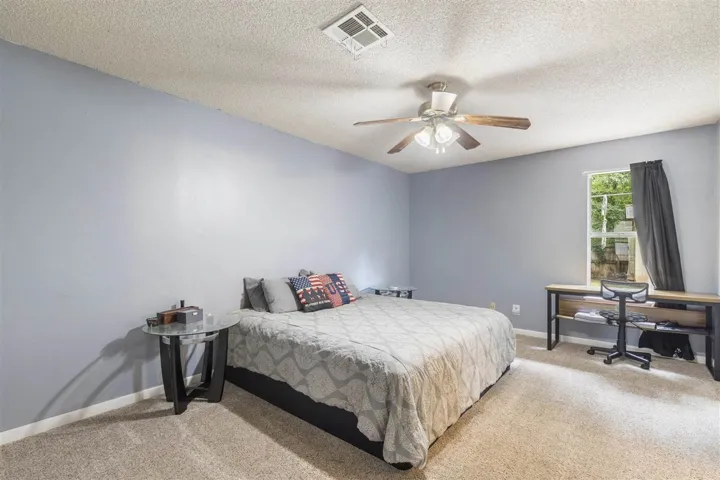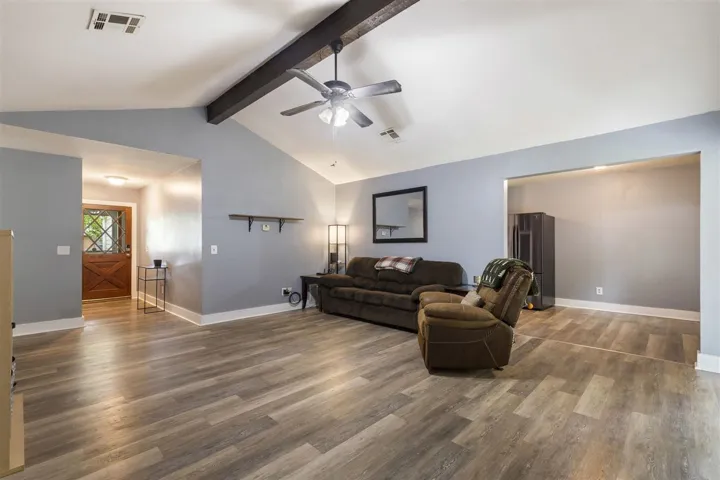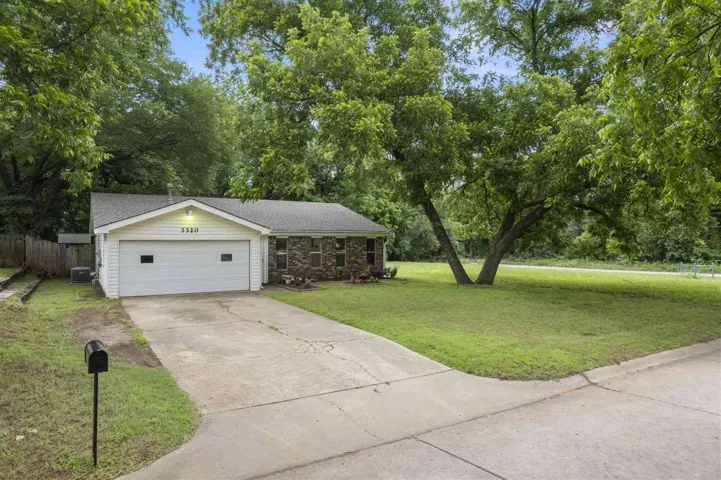 This adorable home offers three bedrooms, two bathrooms, and a cozy 1,325 square feet of living space, perfectly situated on a desirable corner lot in a quiet neighborhood close to the BOB route making it easy to access campus. The large master easily fits a king size bed, offers a walk-in closet and private ensuite. The living room features vaulted ceilings and a beautiful rustic beam. The backyard is fully fenced with a privacy fence, creating a serene retreat that backs to peaceful woods—ideal for relaxation and outdoor activities. The covered patio allows for outdoor cooking and dining no matter the weather. In case of severe weather, the two car garage includes a storm shelter to keep you safe. From its inviting curb appeal and great layout, this property exudes warmth and character, making it an ideal place to call home.