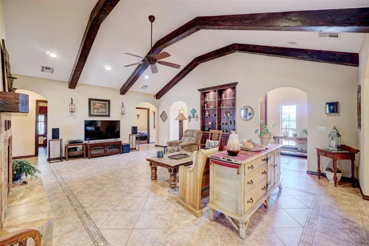 Welcome to your energy-efficient oasis in the heart of Southwest style living! This captivating home boasts 3 bedrooms, 2 1/2 baths, and a multitude of features that redefine luxury living on 45 acres, good grass for your horses, plenty of trees and lots of wildlife. As you step onto the wrap-around porch, adorned with charming ceiling fans, you’ll immediately feel the allure of this home’s design. Picture-perfect courtyards beckon you to enjoy serene moments surrounded by nature’s beauty. Multiple outbuildings provide ample storage for all your needs, whether it’s gardening tools or outdoor equipment. A dedicated garden space and chicken coop cater to your sustainable living aspirations. Inside, you’ll find a host of modern amenities, including a water softener and not one, but two Rinnai tankless water heaters, ensuring comfort and efficiency year-round. The home is enveloped in spray foam insulation, maximizing energy savings. Indulge in the luxurious master bath featuring marble countertops, a walk-in shower with three shower heads, and a Bain air jetted tub with a heater for ultimate relaxation. The courtyard entrance adds a touch of elegance to your daily routine. For added convenience, a living quarters within the shop offers privacy and comfort, complete with its own septic system. A water well ensures endless water supply, while a new roof (installed in 2019) provides peace of mind for years to come. You will appreciate the underground electric from road to house on the north side of the drive, as well as the gas line on the south side. Enjoy cozy evenings by the indoor wood-burning fireplace with a blower and gas starter, surrounded by travertine marble. The courtyard is a true retreat, featuring a wood-burning fireplace with a gas starter, overlooking a picturesque Koi Pond under a pergola. Fountains, filters, and pumps ensure easy maintenance and endless enjoyment. The property also boasts an impressive 80′ x 30′ shop building with a 16′ x 30′ Guest House – additional 480 sq ft finished living space complete with kitchen, bathroom, washer and dryer. Additionally, a red iron horse barn (50′ x 54′) offers versatility and potential for your equestrian dreams. Safety and convenience are paramount, with a storm shelter in the oversize 2-car garage, complete with hot and cold water. The kitchen is a chef’s delight, featuring granite countertops, a commercial ice maker, two garbage disposals, and custom maple cabinets with a cherry wood finish. Entertain with ease in the spacious dining room with a double trayed ceiling, while surround sound speakers in the living room, master bath, and courtyard set the mood for any occasion. Situated approximately half a mile from the highway on a well-maintained blacktop road, this property offers easy access to Oklahoma State University in Stillwater, Tulsa, and Oklahoma City. Escape the ordinary and embrace the extraordinary lifestyle awaiting you at this exceptional property. Schedule your private tour today and make your dreams a reality!