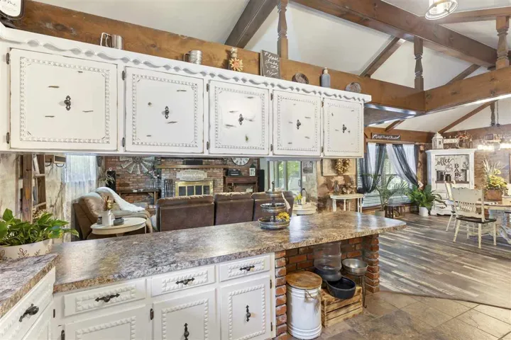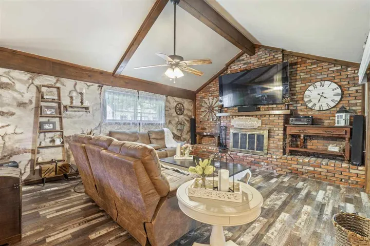 Escape to rustic charm and natural beauty in this enchanting brick home, where classic elegance meets tranquil surroundings. Nestled against the serene backdrop of a sprawling pond, this 3-bedroom, 2-bathroom retreat offers a sense of seclusion just beyond the city limits. Approaching the home, you’ll notice the timeless appeal of new flooring that adds a touch of modernity while maintaining the home’s inherent warmth and character. Step inside to discover a cozy haven adorned with all-new windows and freshly-installed interior and exterior doors, promising both style and energy efficiency. A newly built mid-size shed provides ample storage space for outdoor essentials, while a generously-sized covered patio invites you to unwind and entertain amidst the soothing sounds of nature. Whether hosting gatherings or simply enjoying a quiet moment alone, this outdoor oasis offers endless possibilities for relaxation and enjoyment. Inside, the heart of the home boasts a hot water tank less than a year old, ensuring comfort and convenience for your everyday needs. Embrace eco-friendly living with the inclusion of Geo thermal heating and air conditioning, providing efficient climate control while minimizing environmental impact. Surrounded by towering pine trees, this home offers a sense of tranquility rarely found in suburban living. With just a handful of neighbors nearby, you’ll enjoy a peaceful retreat that feels worlds away from the hustle and bustle of city life. Experience the timeless allure of country living with modern comforts in this inviting sanctuary, where every day brings a sense of serenity and renewal.