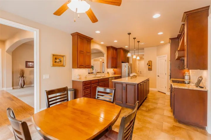 We are proud to offer 1506 S. Ashton for the first time. This custom built home in Berry Creek is a wonderful example of quaility construction & still like brand new! When the owner has so meticulously cared for their home it shows & makes moving in so easy. Floor plan consists of @3162 sqft of living space. Formal & Breakfast Dining. Warm & inviting living room with stone surround fireplace (gas log); Built-Ins , & plentry of space. Kitchen has granite; tons of storage, pull out drawers, undermount lighting, walk in pantry, center island, cook top with vent hood, & extra storage cabinets. Split bedroom arrangement. Two bedrooms with shared bath. 2 1/2 baths(one down & one up). Primary suite with en-suite bath. Primary bath has double sink vanity; large walk in closet plus a large walk in shower. Private Study or 4th bedroom. BONUS room with built in bar; that even includes a sink, plus a 1/2 bath. The perfect enclosed sunroom overlooking very well maintained backyard with landscaping. This home is a Todd Kraybill classic and worth buying! 3 car garage with walk in Storm Shelter. Tankless hot water tank. Two HVAC units. Berry Creek Subdivision: Community Pool/Clubhouse/Gym/Outdoor play area are all accessible to your family with HOA dues.