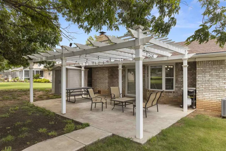 LOCATION LOCATION! East side of Perry Golf Country Club in Lakeview Addition! Looking for a 1,200 sq ft insulated shop w/concrete access? Check out this fantastic opportunity in North Perry. Extremely well maintained and meticulously clean 1,569 sq ft brick home, split floor plan; updated AND move-in ready. This home shows itself. Beautiful details throughout from flooring, updated bathrooms, granite, built-ins, ton of storage, vinyl windows, walk in storm shelter INSIDE, to the vinyl pergola covering patio with sidewalk thru manicured lawn to shop outside. A few more amenities include the leaf guard guttering and appliances to convey! Golf cart access to the Country Club-be sure to inquire about the Country Club summer pool pass! Property priced on point with appraisal (on file in MLS docs) Call today!