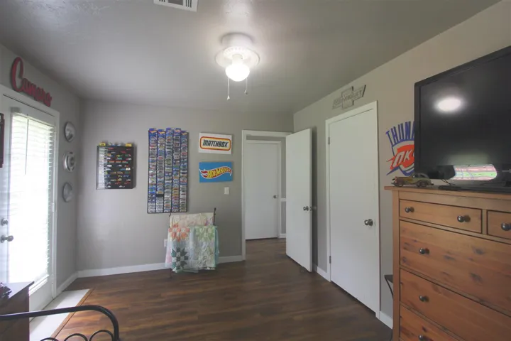 Affordable and adorable! This remodeled home is move-in ready. The floor plan boasts of 2 large bedrooms, a huge family room, updated kitchen and handy utility room. Nature lovers will be enamoured with the private backyard. The property includes a gorgeous, recently built deck, overlooking the wooded greenbelt area. The kitchen boasts of stainless appliances and granite countertops. Featured throughout the home is lamimate wood flooring. The storage building in the backyard remains.