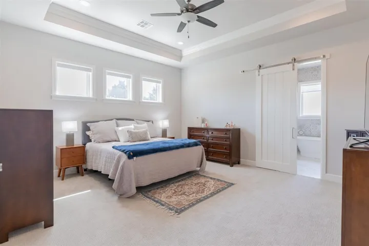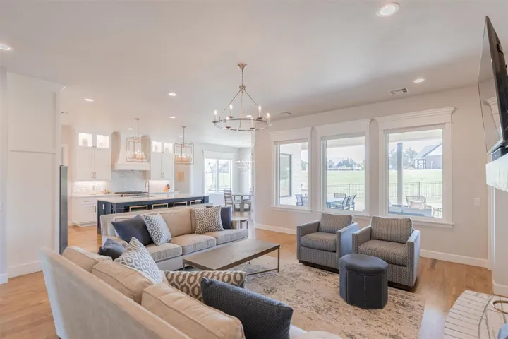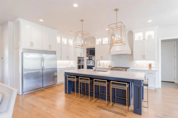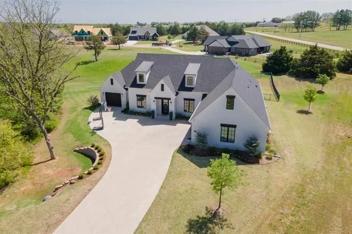 Welcome to your dream home! This stunning 4-bedroom, 3-bathroom and 2-half bath abode, located in a gated neighborhood with a pond, invites you in with breathtaking details at every turn. As you enter, you’ll be greeted by a captivating kitchen boasting a serving pantry with a warming drawer and wine refrigerator along with a generous walk-in pantry, perfect for culinary enthusiasts. The primary living spaces are adorned with beautiful hardwood floors, while brand new carpet throughout adds comfort and style. The thoughtful split design on the first floor offers a secluded primary suite featuring a walk-in storm shelter in the primary closet, along with a guest bedroom, with an en-suite, ideal for hosting guests. Upstairs, discover a large bonus room with ample storage and a convenient homework nook, along with two bedrooms connected by a jack and jill bathroom, providing privacy and functionality for the whole family. Key features abound in this home, including electric blinds downstairs, a patio with a wood panel ceiling and gas fireplace, and an outdoor kitchen equipped with two grills (including a Husky Bake) and a refrigerator, perfect for outdoor entertaining. Inside the kitchen offers both gas and electric ovens, plus the microwave can also function as an oven, making meal preparation a breeze. With foam insulation throughout the home and garages, energy efficiency is maximized, ensuring comfort and savings year-round. Don’t miss the chance to make this exquisite property yours – schedule a showing today and experience luxury living at its finest!