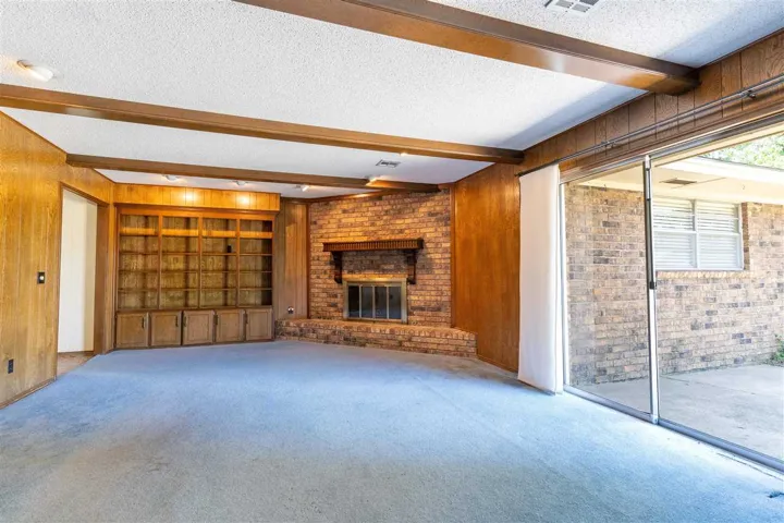 Lovely established neighborhood just east of Boomer Lake. Spacious lot and traditional brick ranch style home. Family room with beamed ceiling and corner fireplace, paneled walls.Two living and two dining areas. Built-in hutch between the two dining areas. Large rooms and wonderful storage throughout. Two bathrooms have had updated ceramic tile floors and tub/shower and toilet have been replaced in hall bath as well as the stand up shower in primary bathroom. There is a handy half bath off laundry/garage area. Washer/dryer and frig stay. This is a well-loved and well-cared for home. Great for entertaining, spacious flat driveway for extra parking or a basketball goal. A new buyer may want to redecorate for their personal style. Visible sheetrock cracks and some slab foundation settling. Power lift has looked at it and said its condition was fairly typical for homes in same area of same age and that it could be fixed. Sellers are selling it “As-Is” and leaving any repairs and redecorating for the next homeowner. Here is an opportunity for a great property if putting in your own “sweat equity” makes sense for you.