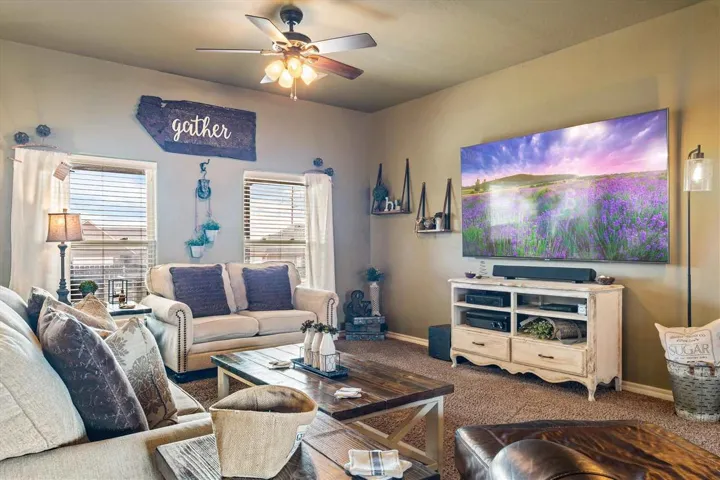 JUST WHAT YOU’VE BEEN LOOKING FOR – a terrific 4 bedroom home in the popular Richmond Elementary School District. Just minutes from shopping and schools, you’ll love this open floor plan with split bedroom arrangement and great versatility. Built in 2009 and with over 2000 sq. ft., this charming home is move-in ready. The spacious family area offers a large living room with a spot for formal dining or extra sitting, sunny breakfast seating, and a spacious kitchen boasting an eating bar and center island. Sleek, black stainless appliances freshen a kitchen that boasts lots of storage and counter space. The primary suite is tucked away in one corner of the home featuring wood flooring and a large bath area with double sink vanity, soaker tub, walk-in shower and roomy closet. Two more roomy bedrooms on the other side of the home offer privacy and convenient access to the hall bath. The “Bonus” area is just that – perfect for a second living space, in-home gym, office or 4th bedroom with closet. A quiet cul-de-sac location, extra garage storage, fenced backyard and in-ground storm shelter will make this your “home sweet home”!