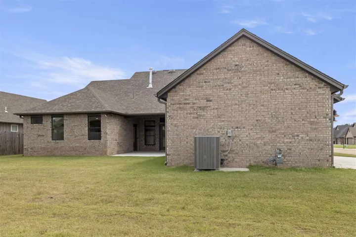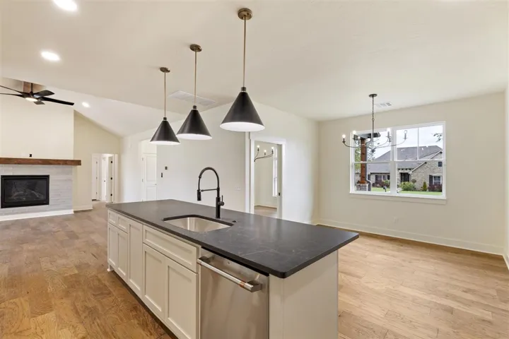 Stunning new Construction in Oakdale Park- 4 Bedrooms, 2 Baths, and Modern Elegance! Welcome to this brand-new, meticulously crafted home in the desirable Oakdale Park subdivision. This exquisite residence spans approximately 2153 square feet and offers a perfect blend of luxury and functionality. From the moment you enter, you’ll be captivated by the sleek design and attention to detail. Off the foyer is a spacious room giving you an option of formal dining or an office. The spacious eat-in kitchen is a true centerpiece, featuring upgraded Cafe appliances, elegant granite countertops, a generous island and a large walk-in pantry with custom cabinetry and countertops. The open-concept living area boasts hardwood floors and a cozy fireplace with gas logs, creating an inviting atmosphere for relaxation and entertainment. The master suite is a serene retreat, complete with plush carpeting, walk-in closet and a beautifully designed ensuite bath with double sinks and large walk-in shower. The three additional bedrooms offer comfort and versatility, perfect for family or guests. The home also includes a large laundry room with a convenient drop zone. Enjoy the outdoor lifestyle with covered porches on both the front and back of the house, ideal for year-round enjoyment. The side-entry 3-car garage not only adds to the home’s curb appeal but also includes a storm shelter in the garage slab for added safety and peace of mind. Situated on a desirable corner lot, this home offers both privacy and ample space. Don’t miss your chance to own this stunning new construction in Oakdale Park!