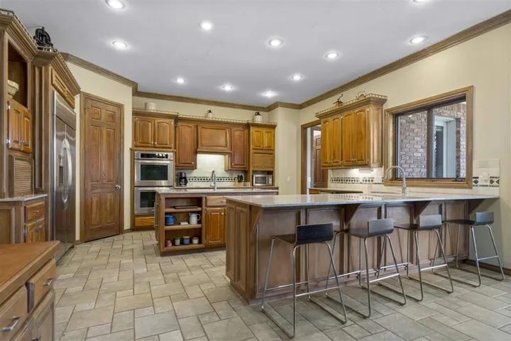 WELCOME HOME to 5 Champion Place . . . The dream home and perfect setting you’ve always imagined exists in this timeless beauty built with a PGA pro golfer in mind and located in Stillwater’s Premier Golfing Community of KARSTEN CREEK. Nestled in wooded privacy and boasting private Lake Louise access, this classic home offers beauty at every turn. The tree-lined drive welcomes you to over 6400 sq. ft of comfortable living space complete with expansive kitchen, spacious indoor and outdoor entertaining areas, saltwater pool with waterfall feature, an extra detached 3-car garage and lakefront access for boating or just enjoying the peaceful outdoors. The majestic, two-story foyer is flooded with natural light, perfectly accenting a gorgeous Austrian Crystal Chandelier, stately entry staircase and lighted glass cabinetry for display. Flanking the entry is a roomy formal dining area providing the perfect space for entertaining large groups and flowing easily into a lovely sitting room with bay window and wood-beamed vaulted ceiling. On the other side of the entry, French glass doors welcome you to an extensive in-home study boasting vast office space, private exterior access, extensive wood paneling, and an expansive view that will make it hard to concentrate on work. The casual family area is spacious and comfortable, featuring wood cross beams, a charming wood-wrapped brick fireplace, open shelving for art and collectibles, all finished by a breath-taking view of the pool, lake and wooded surroundings. An easy flow into the light-filled kitchen and informal dining space gives this home an inviting feel for entertaining small family dinners or large company functions. This kitchen has room for everyone offering a large eating bar plus center prep island complete with bar sink, wine frig, garbage compacter and tons of storage. This “heart of the home” boasts hardwood cabinetry, updated stainless appliances including double ovens, one of two walk-in pantries, extensive counter workspace and beautiful exterior views. Located just off the kitchen, the laundry/mudroom boasts a second walk-in pantry, room for a second frig, extensive storage, soaker sink, hidden hampers, and access to the perfect “hobby” room, a half bath, back staircase to the second floor and direct path to the pool. Tucked away in one corner of the home is an expansive owner’s suite built with luxury, purpose and function in mind. The large sleeping area melts into a spa-like bath space complete with two vanities, expansive soaker tub, walk-in shower and massive closet featuring slide out folding tables, built in hampers, pull down hanging rods and cedar-lined closet. But there’s more – built with the traveler and golfer in mind, the primary suite continues into a golf/luggage storage room with specialized shelving for more than 250 clubs and cubbies built for golf bags or suitcases. Don’t miss the Titleist door pulls reliving the glory days of past OSU matches. The first floor is completed by a guest room with ensuite bath and additional half bath for guests. Two, large bedrooms, each with private baths, begins the second story journey. A secret “hobbit” room would make a terrific play hideaway or just extra all-climate storage. The remaining upstairs space is great for entertaining or holds promise as a studio apartment. The game room features a mini kitchen, ½ bath, lovely views and a second living space perfect as a bedroom or theater room. With a private, back entrance this area offers lots of versatility. The “great outdoors” offers a sparkling gunite, saltwater pool with waterfall feature made from native boulders and rocks and resurfaced 8 years ago. Abundant garage space offers 6 car bays, 1 golf cart bay and a climate-controlled workshop. The heated, detached 3-car garage makes a great gym or hobby area with extra 100-amp power and charging plug. Versatile living space, quality craftsmanship and 2.5 acres make this home a rare find!