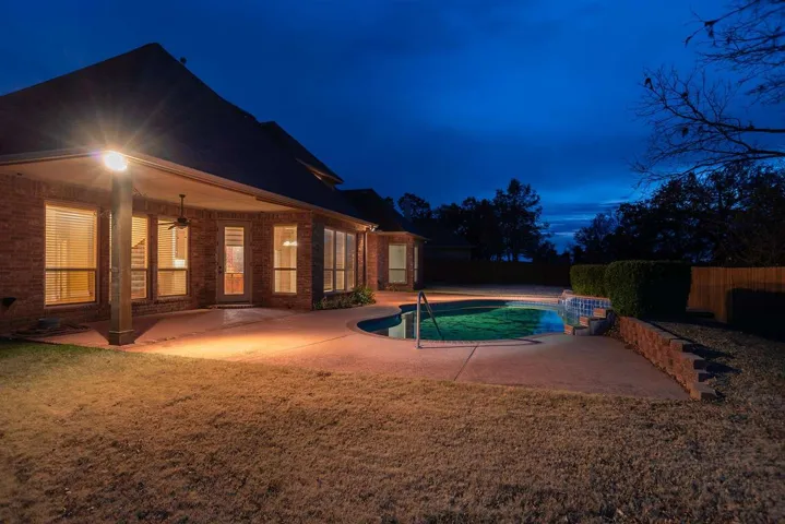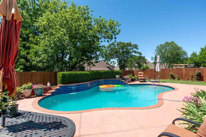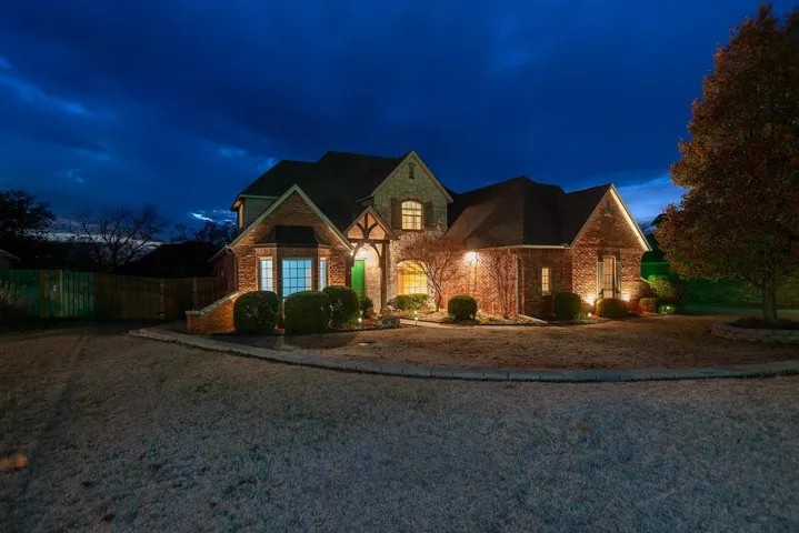 Beautiful 5 bedroom with 3.full baths and 2 and a half bath with 3 car garage. Home located in Woodland Trails and built by Chip Weir Homes! Entering through the front doors you will find a formal dining room and formal living room, with beautiful real wood floors with lots of beautiful shelving. The kitchen has an abundance of cabinets, granite countertops, and an eating bar with island to prepare the food .The kitchen has GE Café appliances including an ice maker that makes nugget ice. The range in kitchen is gas for the people who love to cook with gas. It is surrounded by beautiful brick. The living room is off to kitchen with fireplace with shelving on each side. Both formal and eat in kitchen has doors that lead out to patio to enjoy your beautiful relaxing pool. The master bedroom with bathroom is downstairs. It is all handicap assessable. Master bedroom is wonderful retreat. There is walk in shower and split vanity areas. There is office downstairs that counts as a bedroom with closets. Upstairs is 3 bedrooms, and 2 full baths and ½ bath. Plus a bonus room, that is currently the sellers crap table. Seller would love to give you some pointers on craps. Enjoy the patio with a gas hookup for your gas grill for your outdoor cooking while enjoying the beautiful pool. Property is surrounded by privacy fence. There are plenty of extra perks in this home such as an in-ground sprinkler system, tankless water heater, ice machine to make ice like Sonic, natural gas for all your cooking needs, 2 ac units, 1 up and 1 down. Brand new floor, brand new dishwasher, new carpet, new downstairs unit, new range and ice maker ( 2 years ) Sangre Ridge school district. Hurry before this one is gone.