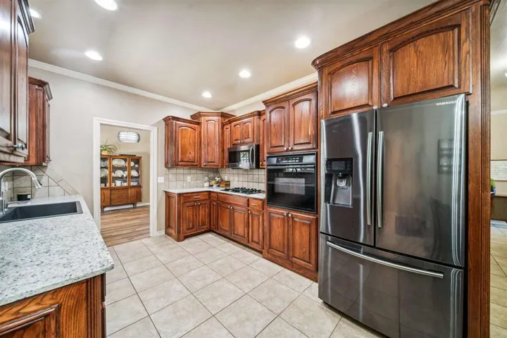 Nestled in the highly desirable Wedgewood edition, where tall trees and winding streets create a captivating setting. This beautifully updated home offers both charm and function, with new luxury plank flooring and soaring ceilings, the open living space feels airy and inviting. The gas log fireplace adds a cozy touch, and the private office, with its window overlooking the entry, provides a peaceful spot to work from home. The kitchen is spotless and beautifully updated, featuring quartz countertops, a gas cooktop, sleek black appliances, and a window above the sink that fills the space with natural light. The breakfast nook offers a cozy spot for casual meals, and the dining room, overlooking the backyard, is perfect for hosting gatherings. A separate laundry room and thoughtfully placed storage spaces add to the home’s practicality. The spacious primary bedroom with en-suite is located downstairs, while all secondary bedrooms are upstairs for privacy. The serene backyard with a covered patio, a sparkling above ground pool with deck, a garden, and a shed—perfect for enjoying the outdoors. The neighborhood green space and basketball court are just steps away. This home has been meticulously maintained and updated, with a professionally painted exterior in 2020, a brand-new roof and gutters installed in 2023, and a new HVAC system in 2024. The deck was added in 2022, enhancing the outdoor living space. The three-car garage with an epoxy-coated floor and oversized storm shelter (for up to 12 people) provide peace of mind. Every detail has been thoughtfully curated to welcome you home. Schedule your own private tour today!