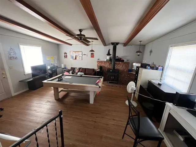 A spacious brick home offering nearly 2,000 sq ft of comfortable living space, perfect for a family or an investment opportunity. This charming property features 3, possibly 4 bedrooms, and 2 full baths. The home boasts two large family rooms, with one showcasing beautiful wood beams and a cozy wood-burning stove. The original hardwood floors throughout the bedrooms and living areas add timeless character. Situated on a desirable corner lot, this home also includes a two-car garage, a detached storage shed, and a storm shelter. Currently leased at $1,700/month through the end of May 2025, this property is an ideal investment or future family home in a prime location. Don’t miss out on this opportunity!