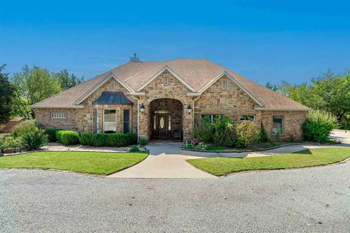 Featuring this Custom-built home that’s absolutely STUNNING. This exquisite property offers 3 Bed, plus a versatile Den/Study and 2.5 luxurious baths. NESTLED on a beautifully landscaped 3 acre (m/l) lot that’s extremely well maintained home and features Radiant Heated Oak Hardwood floors throughout that provides both warmth and elegance. The Upscale kitchen is a Chef’s dream, boasting top-of-the-line appliances, abundant granite countertops and beautiful solid wood cabinetry. The spacious center island is perfect for culinary creations and gatherings. The Great Room is truly a showstopper, featuring beautiful Crown Molding (12’ ceilings), a massive Stone Hearth floor-to-ceiling fireplace that adds a touch of grandeur. The spacious primary bedroom with its impressive dimensions and fantastic outdoor view sets a welcoming tone. The double Steam Shower in the primary Bath is a luxurious touch, complemented by the ample closet space. It’s great the home includes a large Den/study that can serve as a 4th bedroom providing flexibility for guests or family, the additional Bedrooms are generously sized (17’x14’ & 14’x14’). The 3 Car garage with organized storage is a practical feature, while the lovely Trek decking and landscaped grounds enhance the outdoor experience. Sellers have added 6” guttering with covers for easy care, plus on the East side of the home you can step off the deck and hop into the storm shelter if the need arises. Don’t forget the 16’x 40’ Better Built Studio/shop adjacent to the driveway added in 2021 that has Electric, Mini-AC, ceiling fans, LED lights and Loft for Storage AND there’s a nice, private Neighborhood Lake just a couple of minutes down the road. So MANY unique features and surprises throughout the home and property it’s certainly a MUST-SEE!!!