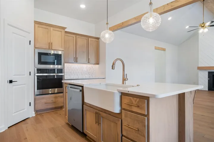 *Price Reduced* This residence includes an expansive breakfast area that can double as a formal dining space, along with walk-in closets in every bedroom! A utility room conveniently sits near the secondary bedrooms, while a mudroom is located at the garage entrance. The kitchen showcases exquisite quartz countertops, a farmhouse sink, a walk-in pantry, and top-notch built-in appliances including a gas range. The living room impresses with a cathedral ceiling adorned with a wooden beam, elegant wood flooring, and a stunning shiplap fireplace. The primary bedroom offers generous space, and the primary bath is adorned with a quartz vanity featuring dual sinks, a freestanding tub, and a tiled shower. Teal Ridge is located in Stillwater close to downtown and Oklahoma State University. With small cul-de-sacs, it’s the perfect location for your new home. Residents of Teal Ridge will enjoy quick access into downtown Stillwater and I-35. Home to Oklahoma State University, Stillwater was voted one of the 100 top places to live in 2010 according to CNN Money Magazine. Stillwater is noted for its diverse economy from manufacturing to advanced technology with the largest employer being the university. Included features: * Peace-of- mind warranties * 10-year structural warranty *Tankless water heater * Guaranteed heating and cooling usage on most Ideal Homes * Fully landscaped front & backyard * Fully fenced backyard. Floorplan may differ slightly from completed home.