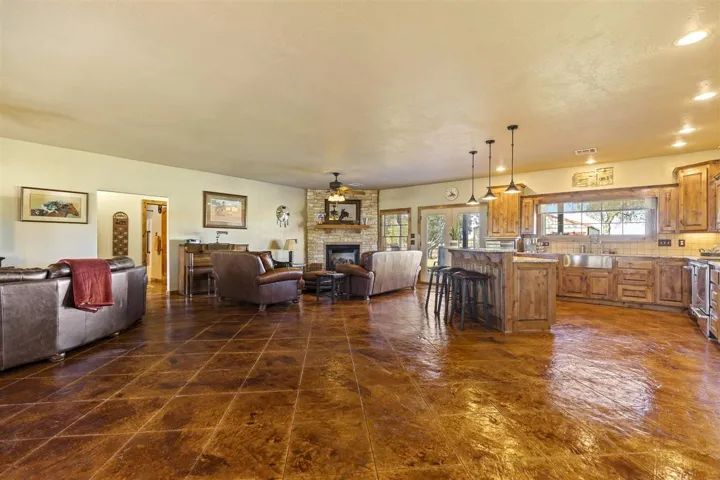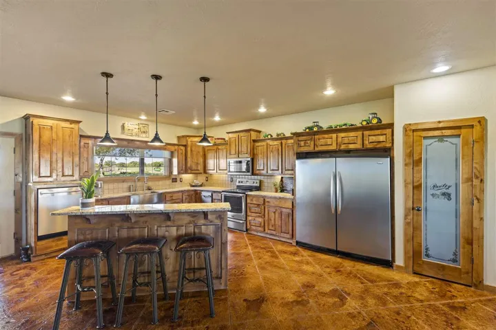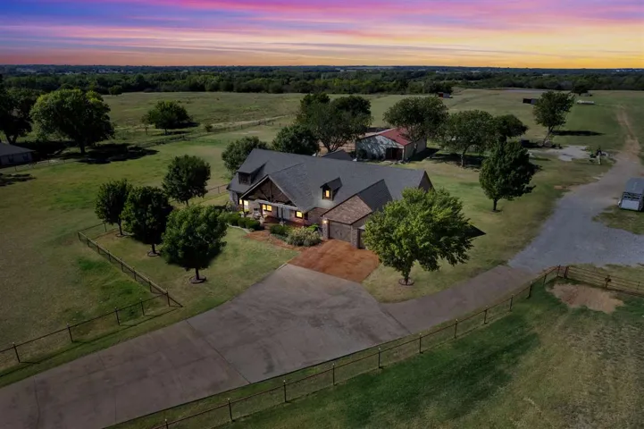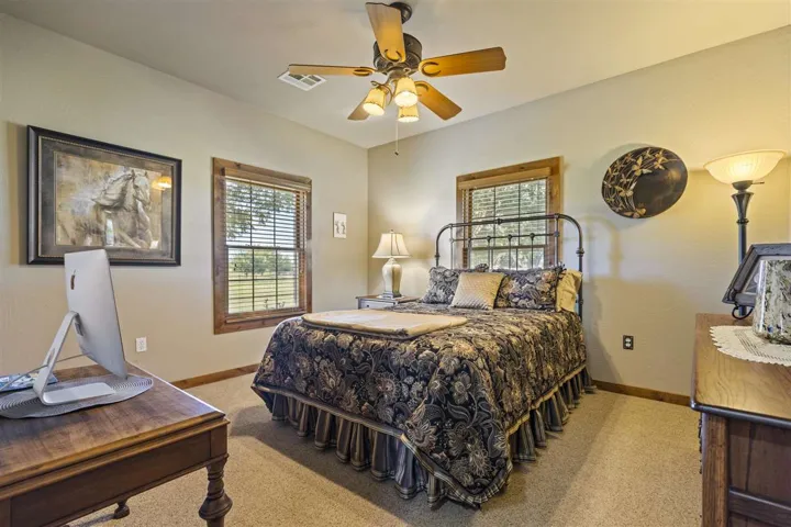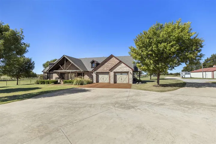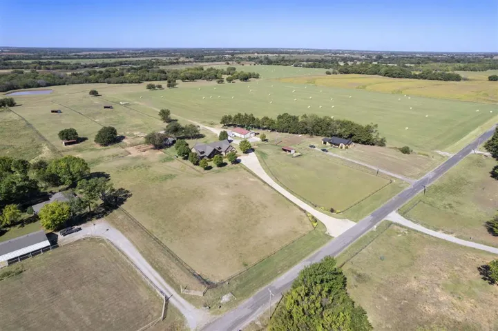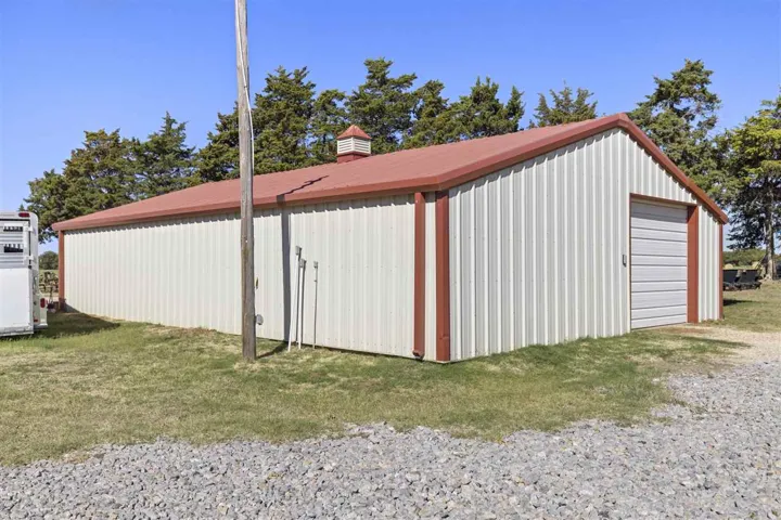 This remarkable 118.7-acre horse property offers quality equine amenities with ample opportunity to craft it into the equestrian facility of your dreams! Location, Location, Location! This property is located in “The Quarter Horse Capital of the World!” in the Heart of Oklahoma. Easy access to I-35 and top-rated equine services nearby from quality hay producers, equine veterinarians, tack and feed stores to arena’s, training barns, race tracks, breeding farms and so much more! The best of both worlds, every amenity of big city living is just a short trip up i-35 meanwhile, you can stargaze from your back yard with no interruption from city lights. Step into this beautifully crafted 3-bedroom, 2.5-bathroom home, complete with an office, where attention to detail shines throughout. The open floor plan features gorgeous stained and stamped concrete flooring that extends through the main living areas. The stained, sealed and stamped concrete front and back patios, create a seamless blend of indoor and outdoor living, perfect for hosting family, friends or clients! If the sun gets too warm, simply drop the porch shades for a quick cool down but be sure to raise them up again to bear witness to the phenomenal picturesque Oklahoma sunsets! The kitchen is a chef’s dream with granite countertops, stainless steel appliances, a convenient pantry, and an impressive commercial-sized fridge and freezer, along with nearly new Kitchenaid under cabinet ice maker and Whirlpool Microwave. The primary suite boasts of ultimate comfort and convenience with dual walk-in closets, dual sinks and dual shower heads as well as a secluded built-in safe for all your valuable belongings. The oversized attached garage offers ample room for SUVs or trucks, and is easily accessible from the home, no need to navigate stairs to carry groceries in or luggage out! This home has several energy efficiency upgrades including a heat pump, solar powered attic fans and a double insulated attic with a heat shield/radiant barrier. The sturdy cinder block barn features a concrete floor, water and full electric service, providing 3 spacious 10×12 wire mesh stalls with room to add a 4th. The barn is equipped with a TORK lighting system, perfect for keeping mares under lights or managing winter coat growth for show or race horses. Each stall has its own attached pipe run with lean-to coverage, offering comfort and protection for your horses. The property includes 4 large meticulously maintained turnout paddocks for grazing, mature shade trees, horse shelters, automatic waterers, complete with top-notch pipe and no-climb horse fencing for added safety and security. In addition to the impressive horse facilities, the property also features a 42×50 shop with a concrete floor and electric, as well as a centrally located, easily accessible 8×6 storm cellar for peace of mind. Need room to build an arena, mare motel, stallion barn or training track? Or maybe put your mind at ease with knowing you can produce your own hay. The additional 100 acres that adjoins the equine facilities offers endless possibilities, whether you’re looking to expand your equestrian operation, build your dream facility, or if the equestrian lifestyle isn’t for you there is potential to develop a new subdivision. Approximately 65% of the land consists of flat, cleared, and well-maintained Bermuda hay fields, capable of producing up to 4 round bales per acre. An additional 25% is cleared, fenced pasture land, ideal for grazing, while 10% features a picturesque gully with mature shade trees. The property boasts two stunning ponds, stocked with game fish, perfect for recreational enjoyment. With a water meter already on-site, electric available at the road, and a separate driveway entrance, this land is ready host whatever dream you have for it. Over a quarter-mile of paved Sooner Ave frontage offers excellent access and visibility for any future projects.