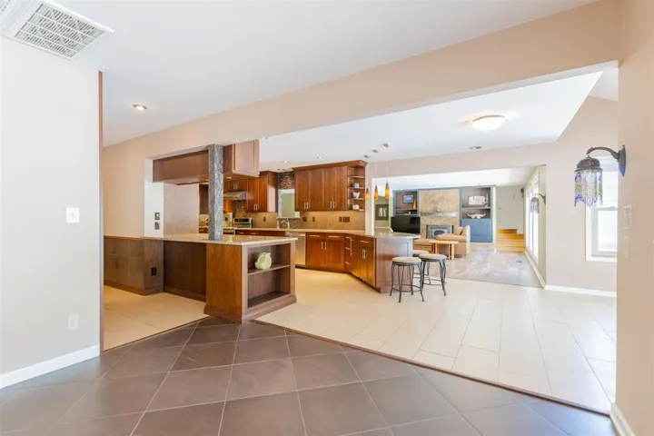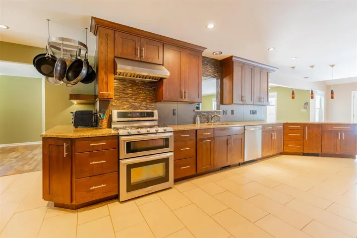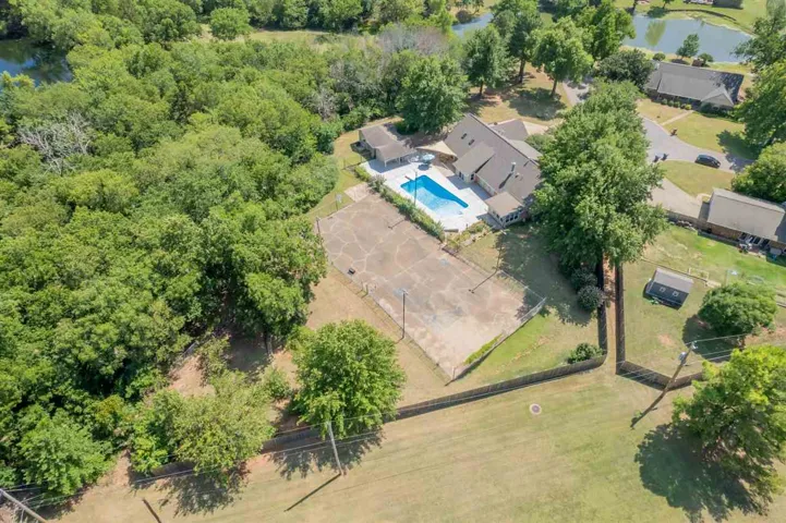 WOWZA.. To the original owner for building such a cool house. WOWZA.. To the Current owner for making, it even more awesome! Pictures are perfect; but you really have to look for yourself! While exploring the interior you will find the ultimate remodel in the kitchen. Kitchen has updated cabinets (modern style with soft close drawers/cabinets); two sinks, bar eating, prep space galore, pantry cabinetry, plus views of living area & outdoor space. Formal Dining & Breakfast Dining. Large Living room with fireplace (big & cozy); a lot of natural light & beautiful flooring. North wing has 2nd bedroom; full bath plus primary bdrm and bath. Primary bdrm has 2 walk in closets; plus, a SUNROOM to fully embrace the outdoors, without the hassle of bugs, that leads to outdoor patio. South wing: past the kitchen, is an enormous laundry/mud room with full shower (a magical steam shower). Upstairs has 3 bdrms with full bath. Each room has its own sink (genius design if you have children). The expanding back patio wraps around the large diving pool; tennis courts that are lighted & fenced (redo the surface to make Pickle Ball Courts), or basketball court; whatever fun you want. While exploring more of the backyard; don’t forget the outbuilding with pool equipment; plus, enough space for a Bungalow living area (hotel type heat/air). Is there a storm shelter? Yes, in the garage. This spectacular residence sits on approx. 1.3 acres m/l with wooded space & privacy! Located just a few Mintus (walk if you like) from Sangre Ridge Elementary; Stillwater Middle School, & Renaissance Day Care. This is the home for grand entertaining or simple family relaxation.