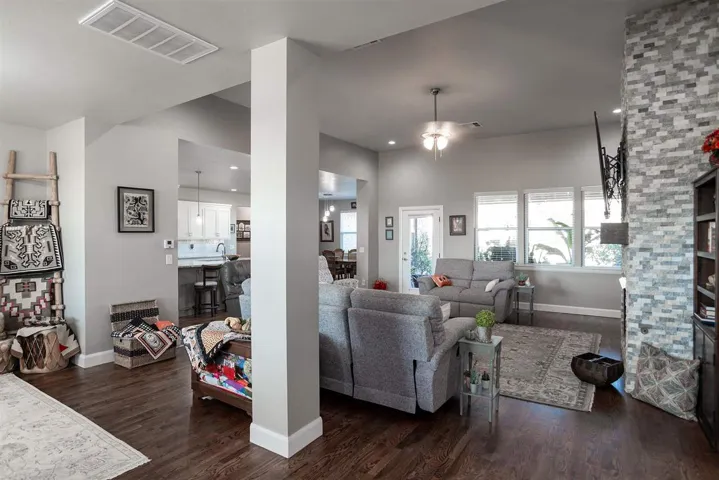 Located in charming Roka Hidden Lake subdivision, situated on a spacious corner, you’ll find this truly stunning, one-of-a-kind home. At first glance your eyes will be drawn to the amazing views from the front porch overlooking the pond. Built in 2022, this showstopper features a near perfect layout with a split bedroom arrangement with 4 bedrooms, 3.5 bathrooms, an opening living/dining/kitchen area ideal for entertaining or enjoying family time in the evenings. The exterior of the home has been upgraded with additional parking for the 3 car garage, larger concrete sidewalks around the home, impeccable eye catching rock landscapes and exceptional low maintenance landscaping and a sprinkler system. As you look away from the landscaping and views of the water, you’ll find beautiful real hard wood floors throughout and a stunning stone fireplace to accent the large open living space. The kitchen offers extraordinary granite counter tops, extra-large island with seating, tons of built in cabinets, ginormous walk in pantry, upgraded stainless steel appliances and a large farmhouse sink in the island. The 3 spacious guest bedrooms offer many possibilities along with 2 full bathrooms with matching granite. The primary bedroom is tucked away offering privacy and has an ensuite that is a must have. The primary bathroom has his/her private matching vanities with the granite countertops, plenty of built in storage, luxurious soaking tub and separate shower with dual shower heads. The walk-in closet is off the bathroom and has plenty of built in storage, hanging space and opens to the laundry room. The third garage is heated and cooled with a mini split unit and currently serves as a wood working shop. This home is a must see if you are in the market and the list of upgrades is too numerous to list. You have to see it to believe it!