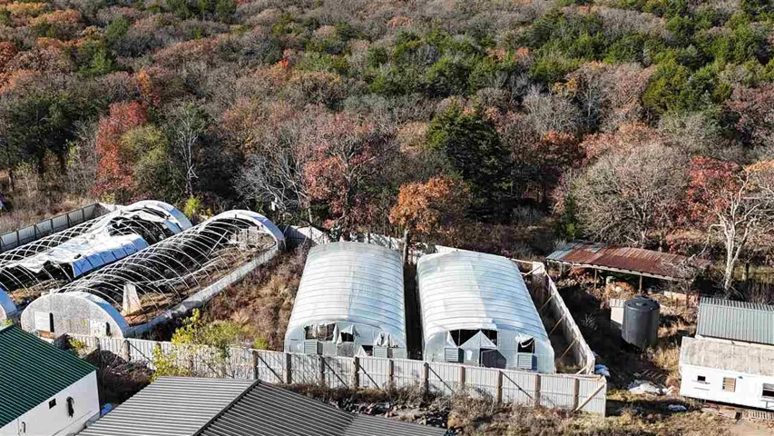 Land: 40 acres. 4 warehouses, each measuring 4,800 sq ft with metal roofing and insulation, built in 2021. 6 Greenhouses ranging from 1,800 to 3,000 sq ft, all of which are steel-framed. 1 single house measuring 2,520 sq ft with three bedrooms and two bathrooms plus two bonus rooms. 2 metal workshops around 1,500 sq ft each. 1 double-wide mobile home around 1,500 sq ft split into five bedrooms with two bathrooms. 2 single-wide mobile homes around 1,000 sq ft each repurposed as open storage buildings without rooms or bathrooms. 2 ponds totaling approximately two acres. One 40 ft metal container. An oil well is present on the land but is not included in the property sale, and surface rights only. The property is sold ‘as-is’ and ‘where-is’.