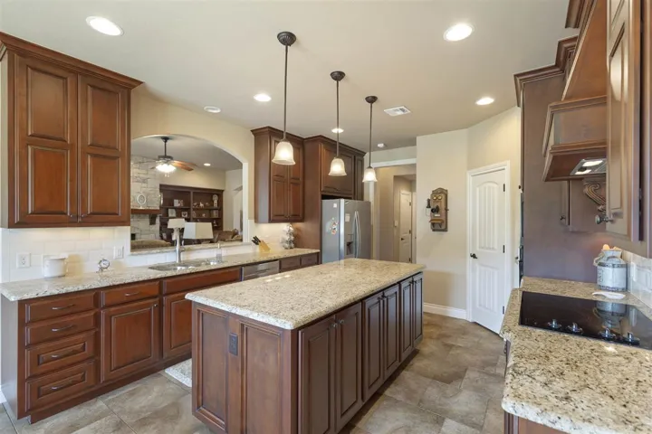 Welcome Home to this beautiful, one-owner, custom home in the popular neighborhood of Berry Creek in Southwest Stillwater! This versatile, easy flow floor plan offers lots of space for a growing family featuring an open living concept with two dining areas, a roomy kitchen with center island, 3 spacious bedrooms, a designated home office or 4th bedroom, plus a huge bonus room flex space big enough for a theater room or pool table. Hard wood flooring, arched entries, a stone fireplace, tons of storage and move-in ready condition make this home the perfect place to spend the holidays! The large kitchen features lots of counter space perfect for baking, stainless appliances and granite countertops, a true exhaust hood and spacious walk-in pantry. Tucked away in a private corner of the home, the primary suite boasts a large bath area with roomy walk-in shower, double sink vanity and large walk-in closet. Two more bedrooms, large enough for queen beds, are conveniently located on the main floor near a stylish full bath. The second floor flex room is perfect for movie night with built in refreshment bar complete with sink and frig, plus a convenient half bath. But there’s more – a cozy screened porch offering additional living space for most of the year. Additional features include: easy access safe room, in-ground sprinkler system and large walk-in attic. Plus Berry Creek residents can enjoy the convenience of a private neighborhood pool and clubhouse without the maintenance worries. Come take a look – this home is ready just in time for hosting holiday dinners!