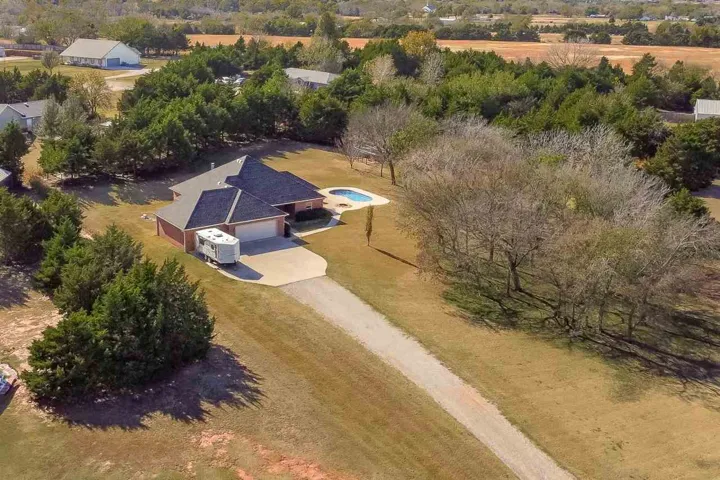 TRANQUIL COUNTRY LIVING IN LOST CREEK ESTATES Discover your own slice of paradise nestled between Stillwater and Perkins, OK in Lost Creek Estates. This inviting home sits on a sprawling 1.54-acre lot, offering the perfect balance of open space and mature trees for natural shade and privacy. The thoughtfully designed interior showcases three spacious bedrooms and two full bathrooms, featuring stained concrete floors throughout the main living areas and comfortable carpeting in the bedrooms. The heart of the home boasts an impressive fireplace creating a cozy atmosphere and unique architectural feature. Entertaining is a breeze with the open-concept design, where the kitchen is open to the living room, perfect for gatherings both large and small. The three-car garage provides ample space for vehicles and storage, while the sparkling inground pool creates a private oasis for summer relaxation and entertainment. BONUS: Seller replaced the roof and the hot water heater in October 2024. Located in the Perkins School District, this property offers the ideal blend of country tranquility and convenient access to both Stillwater and Perkins amenities. Experience the best of rural living while maintaining easy proximity to shopping, dining, and entertainment options in both communities. This exceptional property presents a rare opportunity to enjoy peaceful country living without sacrificing modern conveniences. Schedule your private showing today to experience the charm of Lost Creek Estates living.