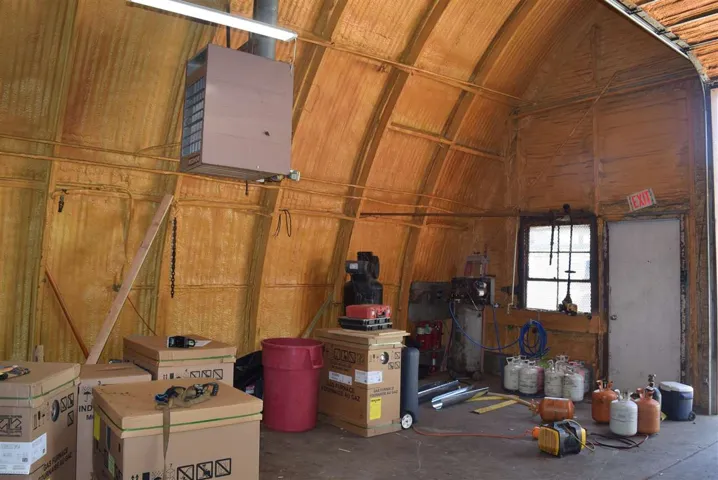 LOCATION, LOCATION, LOCATION!! 30X60, 3200 square foot arch-rib, Quoin with office, bathroom, loft and parts room. Overhead doors and walk in doors. 4 gas heaters, office with window unit. Racks stay with property. 3 phase electric. Large parking area beside shop for all your equipment and plenty of parking in front. Must see to appreciate this insulated shop just ready to use for your business ! Call now for a viewing or more information!