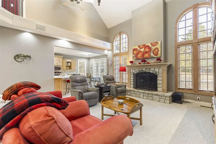 LUXURY LIVING in a quiet secluded area! This glorious, VERY LARGE custom built home has plenty of space inside and outside. From the front you will enter through the new beautiful blue 8′ door with side panels by Pella. Inside, the over 4500 square feet of living space includes a very large master bedroom with an attached study & gas fireplace. The master bathroom has 3 closets, a soaker tub, walk-in shower, his & hers vanities, and a HEATED FLOOR. Entertain your friends with a formal dining room and formal living room with lots of natural light through the beautiful windows and available is convenient half bath for guests. Then enter into the butlers pantry and fully equipped gorgeous kitchen with custom cabinetry and pull out lower cabinets. The appliances are a professional Thermador gas cooktop, ultra quiet dishwasher, large stainless steel refrigerator, and extras include a warming oven, small refrigerator, and wine cooler (not warranted). The countertops were recently replaced with beautiful quartz and a new 14 gauge sink with new hardware has been installed. The kitchen eating area is open to a more casual living space with a stately rock fireplace (gas) and large built in cabinets. The laundry room has an abundance of storage and don’t miss the walk-in pantry that doubles as a safe room with steel-reinforced concrete walls and ceiling. You an also feel safe because a security system is included. Nearby is the attached garage with an immaculate epoxy floor and storage cabinets. Outside the back door is a large covered patio and a second two-car garage with storage cabinets and space for more storage or additional cars. Back inside the home follow the hand-crafted and lighted stairway upstairs to 3 more bedrooms, 2 full baths, a media room (could be a bedroom), a catwalk overlooking the living areas and a completely finished 384 sq ft storage/bonus room that is heat and cooled. All the carpet in the home has been replaced and is heavy duty quality on top of a memory foam pad. Some of the interior has been painted and all 4 toilets have been upgraded to Kohler brand. Most of the sinks and toilets now have new water supply lines and the upstairs water heater has been replaced. Blown in fiberglass insulation has been added in the attic for efficient utility cost, and CREC is the electric company with Centranet for Internet. Outside you will notice professional landscaping with a sprinkler system, a private back yard and a giant patio. Also, a recently installed “trench” drain on the north side and where a glassed in porch originally existed 4 piers were recently installed. (warranty provided). Also, the aerobic septic pump is new. A sump pump under the heater plenum in the master bath closet was replaced as well. Most of the roof has 40 year Elk Prestique Level 4 hail/wind resistant shingles. METICULOUSLY KEPT, this home is one of a kind for special Buyers.
