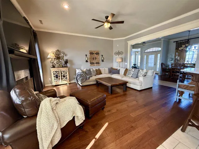 Don’t miss out on this amazing home in a sought after neighborhood offering a spacious corner lot and lovely views on the walking trails. This custom home has an open kitchen to living room with plantation shutters and custom draperies to complement the new interior paint and new wood flooring. The kitchen has a new dishwasher, and the home has new interior and exterior light fixtures. Other updates include a new roof as of May 2024, a new HVAC in 2023, and hot water tank replaced in 2022. Another plus for those who work in the garage is the garage has a smaller hvac unit. This corner lot provides an enormous back yard with a wonderful covered patio ready for entertaining and added privacy with the vinyl fencing and accent privacy wall. Come see and make this fabulous home yours!