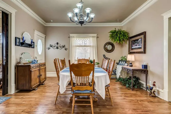 Move in ready and only $106 sq ft!!! Refreshed, renewed and maintained in so many areas. Large corner lot in great location close to everything in Perkins. Enjoy your mornings and evenings on the covered front wrap around porch. Enter the home to an open foyer and staircase that leads upstairs. The first floor features the foyer, living, dining, kitchen, laundry, enclosed porch/mudroom and the primary bedroom/bath. The primary bath now has two matching vanities and two sinks. The first floor has new flooring with the original hardwood still under it if you would prefer that someday. The upstairs has three bedrooms, a half bath and a huge walk in closet. The backyard is large with a wood privacy fence that would be a wonderful place for children and pets. There are three outbuildings that will remain with the home. There are two HVAC units. (2011 – upstairs and 2024 – downstairs) Some of the updates are: HVAC, flooring, painting inside and outside, primary bath updates, new tile surround on the fireplace, stainless dishwasher, garbage disposal, two storm doors, lighting, etc. There is a water softener that is owned and a security system that is leased. This home has over 2100 sq ft and is a 4 bedroom with 1.5 baths in the wonderful town of Perkins, Oklahoma. Per a previous listing, the decking and roof were replaced in 2014. The fireplace has been filled in years ago so it is not a working FP.