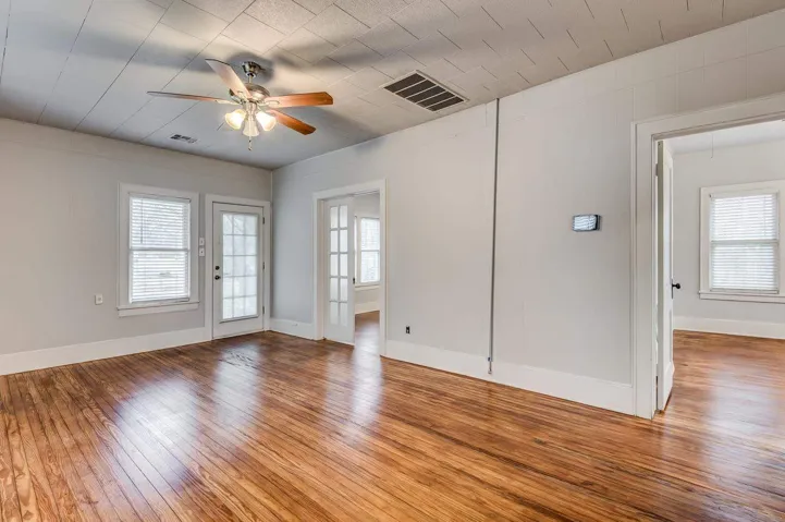 Wonderful bungalow ready for you! 2 beds/1 bath freshly updated – painted, cleaned and move-in ready. UPDATES MADE! Roof repaired, foundation repaired, plumbing repaired. Ready to go. Wood floors are remarkable. Bathtub refinished and looks amazing. Lots of natural light. Central heat and air make this home comfortable and energy efficient. Refrigerator can remain if buyer would like. Gas stove, dishwasher. Utility room off kitchen. Large lot, quiet street. Drive by and then call for an appointment!