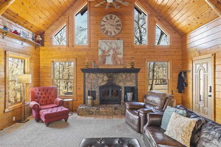 Leafer Lodge Farms is a remarkable 10-acre property that seamlessly blends beauty with profitability, having established itself as a cherished destination. Widely recognized as “The place where Memories & Traditions are Made,” the farm has not only cultivated a strong brand identity but is an exceptional property offering a blend of convenience and tranquility. Just minutes away from shopping, restaurants, and the vibrant atmosphere of Oklahoma State University, this one-of-a-kind log home is an enchanting retreat, making it a true haven for those seeking both proximity to urban amenities and the serene embrace of nature. The residence boasts 4 spacious bedrooms and 2.5 baths, providing ample space for comfort and relaxation. The grand living room is a showstopper, featuring a soaring two-story ceiling with a cozy loft sitting area, an entire wall of windows with a fireplace that serves as the room’s focal point. The home’s layout offers a thoughtful division of spaces that balances privacy with the primary living areas. Downstairs accommodates the primary suite, offering convenience and privacy for the homeowners. An additional 2 bedrooms on this level ensures space for guests or family. Upstairs, the two spacious bedroom options provide a sense of seclusion, ideal for family members or guests, and are joined by a charming sitting area that overlooks the living room. One of the bedroom areas also provide a media room option (media equipment remains/no warranties). The home also has an exterior and interior surround sound system to be enjoyed throughout the seasons. With three separate patio areas, this home provides ideal places for relaxation and soaking in the picturesque views. For hunting enthusiasts, the property includes a strategically placed custom deer blind, known for its consistent success. Additionally, the outbuildings at the front of the property, each equipped with electricity, present endless opportunities for creative use, whether it is setting up a workshop, studio, or additional storage. The property also features a hidden pond, offering a serene escape. Set amidst tall trees and offering stunning views, this property promises a lifestyle of peace and beauty, making it a perfect haven for those who love to entertain and appreciate the great outdoors. Leafer Lodge Farms has a tested and proven success in hosting private events for local schools, sororities, fraternities, and churches. It has not only brought the community together but has also made the farm a go-to venue for memorable gatherings. The farm’s outdoor movie nights, running from October to December, have drawn significant crowds, with many attendees returning year after year. Additionally, the Christmas tree farm has consistently sold out its stock, demonstrating its popularity and reliability. Looking ahead, Leafer Lodge Farms plans to introduce a cut-your-own tree experience in the winter of 2025, promising to enhance the festive spirit and attract even more visitors eager to create lasting holiday traditions. The future looks great for this property and the possibilities of future growth are endless.