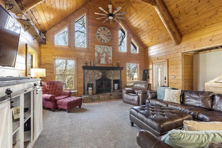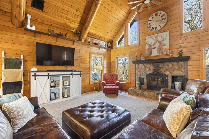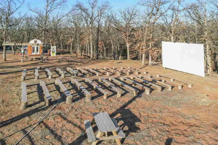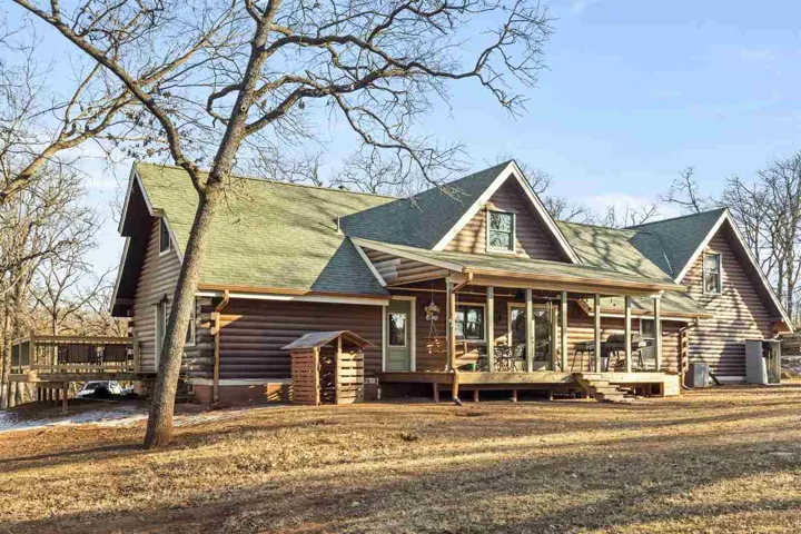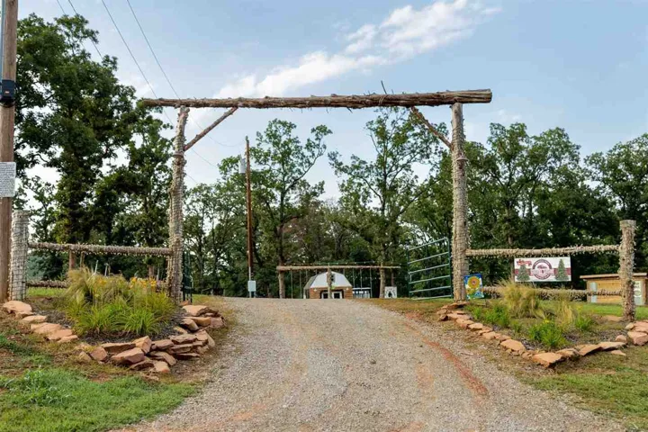 Leafer Lodge Farms is a remarkable 10-acre property that seamlessly blends beauty with profitability, having established itself as a cherished destination. Widely recognized as “The place where Memories & Traditions are Made,” the farm has not only cultivated a strong brand identity but is an exceptional property offering a blend of convenience and tranquility. Leafer Lodge Farms has a tested and proven success in hosting private events for local schools, sororities, fraternities, and churches. It has not only brought the community together but has also made the farm a go-to venue for memorable gatherings. The farm’s outdoor movie nights, running from October to December, have drawn significant crowds, with many attendees returning year after year. Additionally, the Christmas tree farm has consistently sold out its stock, demonstrating its popularity and reliability. Looking ahead, Leafer Lodge Farms plans to introduce a cut-your-own tree experience in the winter of 2025, promising to enhance the festive spirit and attract even more visitors eager to create lasting holiday traditions. The future looks great for this property and the possibilities of future growth are endless. Just minutes away from shopping, restaurants, and the vibrant atmosphere of Oklahoma State University, this one-of-a-kind log home is an enchanting retreat, making it a true haven for those seeking both proximity to urban amenities and the serene embrace of nature. The residence boasts 4 spacious bedrooms and 2.5 baths, providing ample space for comfort and relaxation. The grand living room is a showstopper, featuring a soaring two-story ceiling with a cozy loft sitting area, an entire wall of windows with a fireplace that serves as the room’s focal point. The home’s layout offers a thoughtful division of spaces that balances privacy with the primary living areas. Downstairs accommodates the primary suite, offering convenience and privacy for the homeowners. An additional 2 bedrooms on this level ensures space for guests or family. Upstairs, the two spacious bedroom options provide a sense of seclusion, ideal for family members or guests, and are joined by a charming sitting area that overlooks the living room. One of the bedroom areas also provide a media room option (media equipment remains/no warranties). The home also has an exterior and interior surround sound system to be enjoyed throughout the seasons. With three separate patio areas, this home provides ideal places for relaxation and soaking in the picturesque views. For hunting enthusiasts, the property includes a strategically placed custom deer blind, known for its consistent success. Additionally, the outbuildings at the front of the property, each equipped with electricity, present endless opportunities for creative use, whether it is setting up a workshop, studio, or additional storage. The property also features a hidden pond, offering a serene escape. Set amidst tall trees and offering stunning views, this property promises a lifestyle of peace and beauty, making it a perfect haven for those who love to entertain and appreciate the great outdoors. The property provides endless opportunities for future business endeavors and continued growth.