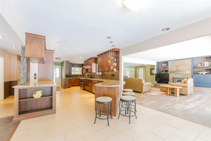 WOWZA.. To the original owner for building such a cool house. WOWZA.. To the Current owner for making, it even more awesome! Pictures are perfect; but you really have to look for yourself! While exploring the interior you will find the ultimate remodel in the kitchen. Kitchen has updated cabinets (modern style with soft close drawers/cabinets); two sinks, bar eating, prep space galore, pantry cabinetry, plus views of living area & outdoor space. Formal Dining & Breakfast Dining. Large Living room with fireplace (big & cozy); a lot of natural light & beautiful flooring. North wing has 2nd bedroom; full bath plus primary bdrm and bath. Primary bdrm has 2 walk in closets; plus, a SUNROOM to fully embrace the outdoors, without the hassle of bugs, that leads to outdoor patio. South wing: past the kitchen, is an enormous laundry/mud room with full shower (a magical steam shower). Upstairs has 3 bdrms with full bath. Each room has its own sink (genius design if you have children). The expanding back patio wraps around the large diving pool; tennis courts that are lighted & fenced (redo the surface to make Pickle Ball Courts), or basketball court; whatever fun you want. While exploring more of the backyard; don’t forget the outbuilding with pool equipment; plus, enough space for a Bungalow living area (hotel type heat/air). Is there a storm shelter? Yes, in the garage. This spectacular residence sits on approx. 1.3 acres m/l with wooded space & privacy! Located just a few Mintus (walk if you like) from Sangre Ridge Elementary; Stillwater Middle School, & Renaissance Day Care. This is the home for grand entertaining or simple family relaxation.