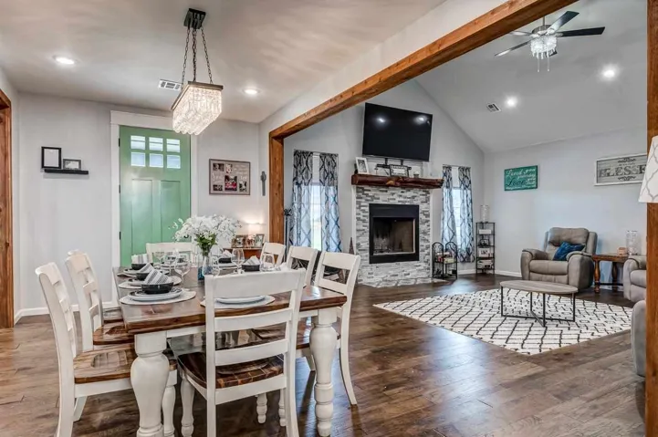 Welcome to this stunning new home, nestled just outside of town in a gated community, where modern comfort meets the serenity of country living. Designed for both relaxation and entertaining, this home offers an inviting open floor plan that effortlessly blends style and functionality. Step inside to discover a spacious kitchen, thoughtfully designed with ample cooking space, a large pantry, and seamless flow making meal prep and gatherings a joy. Convenience is at the heart of this home, with a dedicated drop zone just off the garage for easy organization and a separate laundry room to keep life running smoothly. With five generously sized bedrooms and three and a half baths, there’s room for everyone to unwind and recharge. A private office just off the front door offers additional space for work or quiet reflection. Outside, a large covered patio sets the stage for memorable summer barbecues or peaceful evenings beneath the stars. For added security, a storm shelter provides peace of mind, while the expansive 30×40 shop offers endless possibilities for hobbies, projects, or extra storage. This home is the perfect fusion of modern luxury and rural charm a place where comfort, style, and tranquility come together to create something truly special. Don’t miss the opportunity to make it yours!
