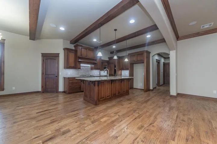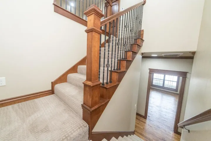 Beautiful custom-built home by Todd Kraybill Construction in the desirable Woodland Trails Addition. The spectacular interior includes 4 bedrooms, 3 full bathrooms plus a large bonus room upstairs. Brick/stone exterior with high roofline, and a beautiful entryway. Spacious open floor plan with high ceiling, wood flooring, wide crown molding, arched doorways and wood shutters throughout. Living area features gas log fireplace, large windows/doors overlooking the patio and backyard. Kitchen features an abundance of cabinets, granite countertops, center island with seating, double ovens and a wrap around pantry. Large primary suite has trayed ceiling and crown molding. A luxurious primary bath with dual sinks, large walk-in shower, separate tub and lots of storage. Primary closet wraps from the laundry room to primary bath with built in shelving and dressers. The utility room has granite counter tops, built-in stand for washer/dryer and utility sink. Two additional bedrooms share a full bath with a tub. The fourth bedroom could also be used as an office and is located off the entrance from the garage along with a full bath with access to storage under the stairs. A large bonus room upstairs could be used in an abundance of ways! There is also lots of attic storage with the room over the garage fully floored. Large, covered patio with built in grill and beautiful landscaping. This home also features two HVAC units, two tankless water heaters, water softener, sprinkler system and built in generator. Home is vacant and easy to show. Call to see it today!