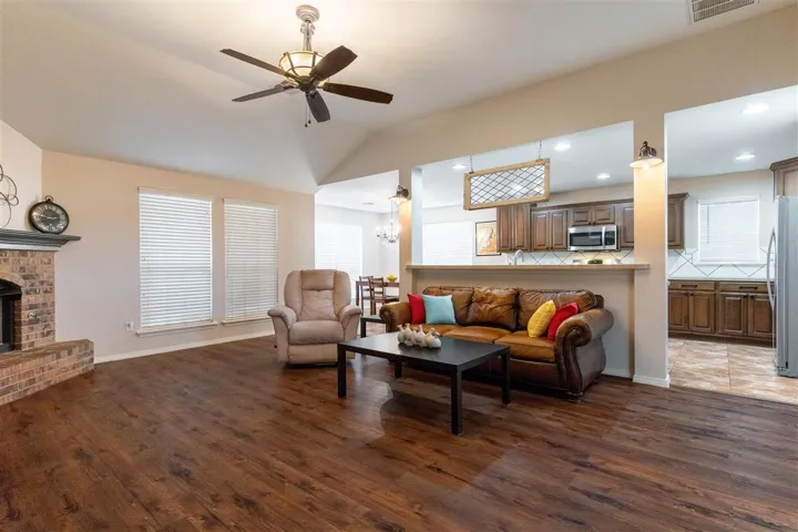 Beautiful brick one level Westpark home that will meet the needs of a variety of homebuyers. LVT wood-look floors, corner fireplace, large open kitchen, stainless appliances, 5 burner gas range, beautiful cabinetry, great pantry. It’s a wonderful floor plan, no wasted space. Tall windows let in the southern light. All the interior was recently painted. Light fixtures and fans have been upgraded. In the utility room, the washer and dryer stay, beautiful cabinets, hanging bar and folding area. Primary bedroom with tray ceiling, crown molding, huge walk-in closet, separate shower and tub, and two sinks. All the windows in the house have matching white 2-inch blinds. Covered patio and privacy fenced yard. Bus picks up for Westwood elementary, plus the neighborhood park is close by. This house is move-in ready and ready for you!