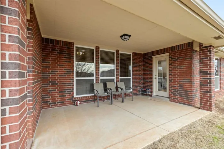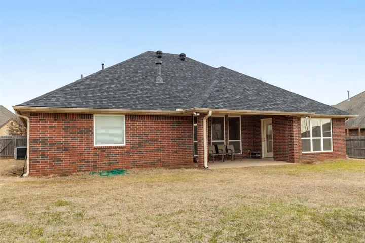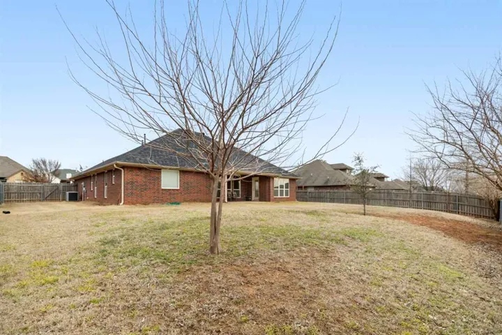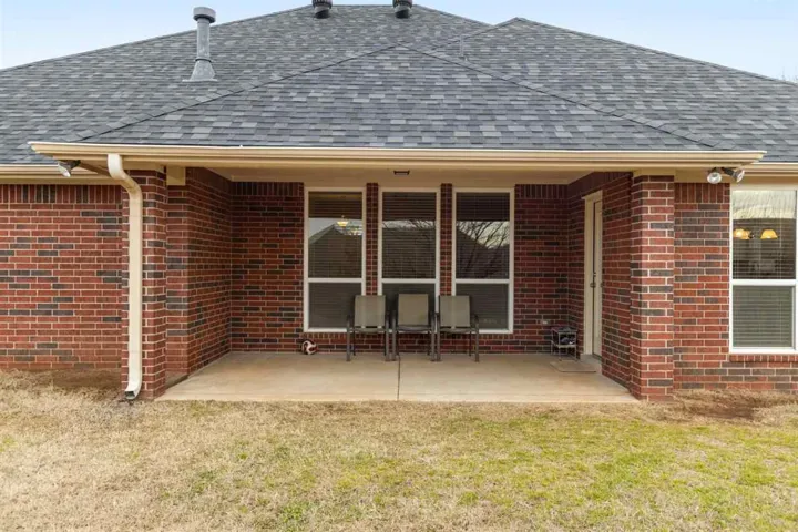 Lovely 4 bedroom, 2 bath home. Beautiful large kitchen with granite, plenty of cabinets and a nice pantry. Spacious living room with gas fireplace. Wood flooring in living room, entry and dining areas. Master bedroom is spacious and ready for your king size bed! Master bath with double sink vanity, walk-in shower and soaker tub. Large master walk-in closet. Utility room has wonderful storage. Three more bedrooms with split bedroom arrangement and convenient full bath. Two-car garage has epoxy coated flooring and storm shelter for Oklahoma weather. Large covered patio with nice size backyard. Roof also has high impact shingles. The home had a security system as well as: 1) FEMA standard storm shelter was installed in 2015. 2) A new roof was installed in 2020 using high impact shingles. 3) A new, quieter dishwasher was installed in 2019. 4) The hot water tank was replaced with a new one in 2020. 5) The garbage disposal was renewed with a better one in 2018.