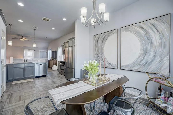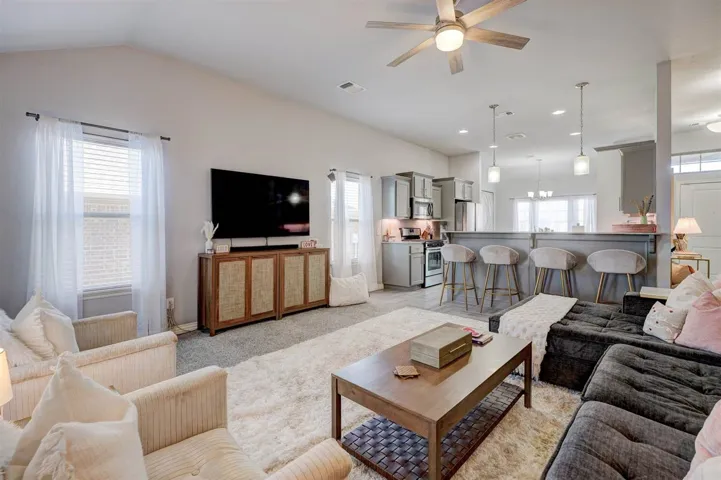 This modern and well-maintained home features a spacious layout with three bedrooms and two full bathrooms. The large living room seamlessly flows into the kitchen, creating an open-concept space perfect for both relaxing and entertaining. The kitchen boasts a full appliance package, along with a convenient pantry and bar-height seating for casual dining. The home is painted in a calm and serene color palette, with tile flooring in kitchen and bathrooms, while living and bedroom spaces have newer carpet. Outside, enjoy a covered patio overlooking a fenced yard, complete with a sprinkler system for easy maintenance. Conveniently located near the turnpike entrance, this home is a great fit for single family home owners or investors alike.