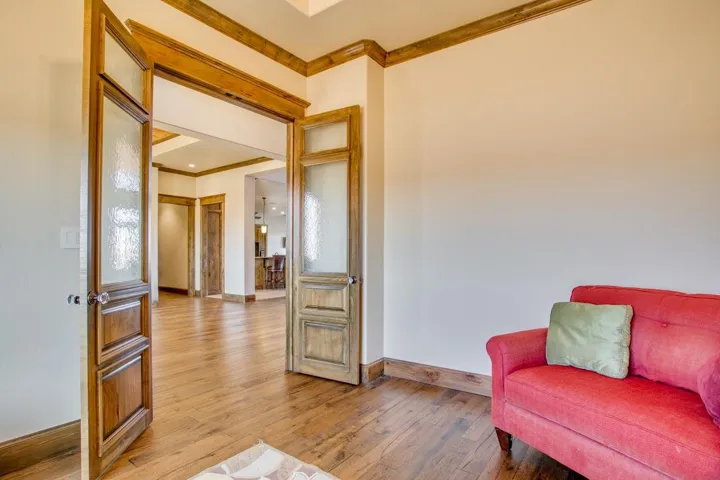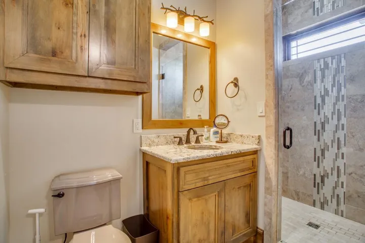 Experience this magnificent home set on over 21 acres. Custom-built in 2018, this residence features 3,995 square feet of thoughtfully designed living space. It includes three spacious bedrooms, each equipped with its own en suite bathroom and walk-in closet. Upon entry, you’ll be greeted by a stunning wood cathedral ceiling that leads into a large living room with captivating views of the gas fireplace and outdoor area. The kitchen is a culinary enthusiast’s paradise, complete with multiple ovens, a Sub-Zero refrigerator, built-in icemaker, microwave, and a two-drawer dishwasher. Custom cabinet features include spice drawers and a mixer lift, along with an impressive U-shaped workspace and a generous breakfast nook. A spacious walkthrough pantry will satisfy even the most selective chef. This home also boasts a convenient laundry room with a sink and built-in space for an upright freeze. Completing the home is a half bath, a large formal dining area, and a sizable office with solid wood double doors featuring beautiful glass inlay. Additional highlights include heated flooring throughout, built-in blinds in all windows, two water wells, multiple geothermal systems for heating and cooling, on-demand hot water, a water softener, and a sprinkler system for easy yard maintenance. The stunning hardwood floors enhance the home’s architectural style. Step outside to discover even more features to love. Solar panels efficiently generate electricity for both the home and shop, helping to reduce OGE electric utilities. The impressive shop spans 125’x75′ and includes heated floors and three geothermal units for a comfortable work environment. It is equipped with three automatic overhead doors (14×14), a 50 AMP RV hookup, two welding plugs, ceiling fans, floor drains for easy cleaning of equipment, a water softener, and an air compressor. In the shop, you’ll also find a “Man Cave” or living quarters complete with a bathroom, kitchen, and washer & dryer. There is also an upstairs loft area great for storage and office area featuring a built-in desk. The shop benefits from spray foam insulation in the walls and double insulation in the ceiling. The property’s exterior offers amenities such as a heated inground swimming pool and a lovely stone water feature. Landrun sod, a sprinkler system, and an 18-foot deep pond, which adds to the serene ambiance of this truly exceptional property. A 48KW Generac Generator ensures the home and shop remain operational during power outages. There are two exterior RV hookups and a sewage dump available. All electrical lines serving the property are buried for safety and aesthetics.