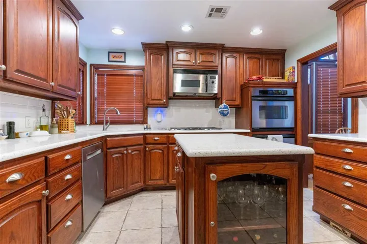 Welcome to 1104 S Pecan Lake Ct! Great layout/split floorplan with 4 bedrooms plus a bonus room, 3.5 baths, with a fabulous flow for everyday living and entertaining. Formal dining area open to large family room with built-ins and fireplace. Kitchen is equipped with stainless steel appliances, solid surface countertops, an island, wine rack and built ins. Primary suite with tray ceiling, fireplace and patio access. Primary bath features two vanities, two closets, separate shower and corner tub. On the other side of the house you will find three large bedrooms, each with a built-in desk and a full bath with a double vanity. Upstairs is a bonus room with a full bath, perfect for a playroom, tv room, office or guest space. Laundry room with sink, storm shelter, and 3 car garage. Enjoy fenced backyard on this corner lot in quiet cul-de-sac. New roof in 2023 and new HVAC June 2024. With space for everyone, this home has everything you need to make memories that will last a lifetime