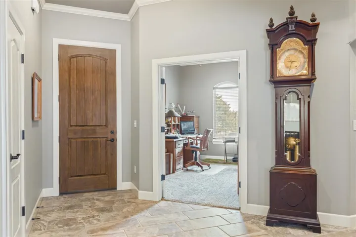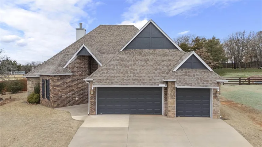 Just what you’ve been waiting for a wonderful home in Southwest Stillwater offering 3 Bedrooms and Private Office, 2 Baths and a 3-Car Garage all on a private ½ acre, fenced lot. Boasting Sangre Ridge Elementary Schools this lovely home built in 2014 offers almost 2200 sq. ft. of one-level living space. Tall ceilings, arched doorways and neutral colors welcome you to a roomy living space open to a light-filled dining area and spacious kitchen. A lovely wood-wrapped fireplace provides a charming focal point for the family area and the adjacent kitchen eating bar connects the cook to the family. The kitchen also boasts a large pantry, stainless steel appliances, designer tile backsplash and granite counters. The primary suite offers restful tranquility tucked away in one corner of the home featuring a lovely light-filled sitting area with bay window. The primary bath offers a large tiled walk-in shower, jetted soaker tub, double sink vanities and walk-through closet with direct laundry room access. A roomy study with classy French doors provides the perfect private area for working from home or maybe a second living area. Two more bedrooms share a sizable jack-n-jill bath, with two private vanity rooms. You’ll love the sizable 3-car garage with floored attic offering the perfect spot for organization and lots of storage. The patio and backyard do not disappoint. Whether it’s playtime, a quiet evening dinner group or football watching rowdiness, this outdoor space offers flexibility and room to roam. Don’t miss the hand laid brick path through the trees, a great place for hide-n-seek too. Plus there’s plenty of room for a future pool too!