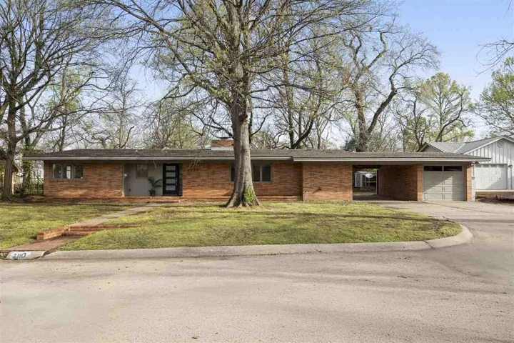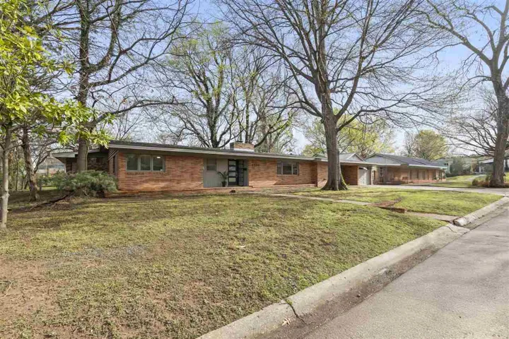 This mid-century classic boasts a terrific location and move-in ready condition too. Only blocks from Westwood Elementary, this home offers 4 bedrooms, 2 remodeled baths, 2 charming living spaces and modernized, open kitchen space. Mature trees and terrific curb appeal welcome you into a charming space full of natural light, warm wood flooring and fresh, updated colors and tones. Two, spacious living areas give room for large family events or entertaining, both anchored by the remodeled kitchen offering lots of prep and storage space, granite countertops, stainless steel appliances and period-true cabinetry. The primary suite offers lots of natural light, private modernized bath space with large vanity and walk-in closet, plus adjoining 4th bedroom perfect for a nursery or private study. Two more spacious bedrooms offer built-in shelving and nice-sized closet space, right next to a renovated hall bath. An in-home cinder block room with steel door offers shelter from storms and extra storage space too. Combination garage space offers versatility and extra workshop area. The large yard is great for enjoying shaded evenings and boasts plenty of play room and fenced dog pen. Lovingly maintained with a new roof in 2024 means this home is ready and waiting for you!