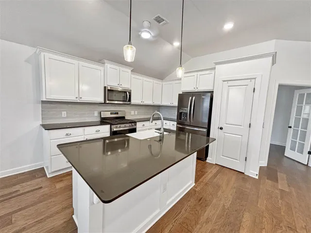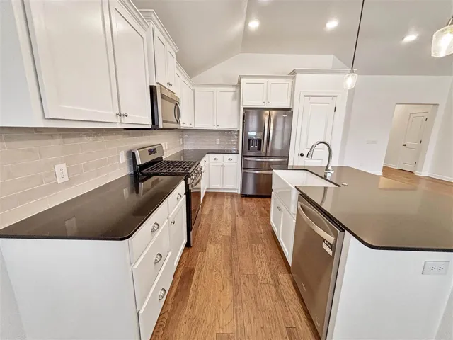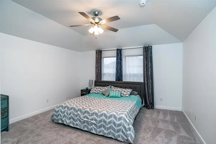 Discover this stunning, like-new home in the highly sought-after Canyons subdivision! Featuring 3 spacious bedrooms plus a versatile flex room that can serve as a 4th bedroom or home office, this home perfectly blends comfort and functionality. The open-concept floor plan offers a desirable split-bedroom design, seamlessly connecting the modern kitchen to the inviting living area—anchored by a cozy fireplace. The kitchen is a chef’s dream, boasting elegant granite countertops, a stylish tile backsplash, and an expansive island with seating—perfect for entertaining while preparing meals. Step outside to your private backyard oasis, complete with a covered back porch, an extended patio, and a fully fenced yard—ideal for outdoor gatherings or peaceful relaxation. The generously sized bedrooms provide plenty of space, while the luxurious master suite features a large walk-in closet and a spa-like master bath. Don’t miss this incredible opportunity to own a beautifully designed home in a prime location!